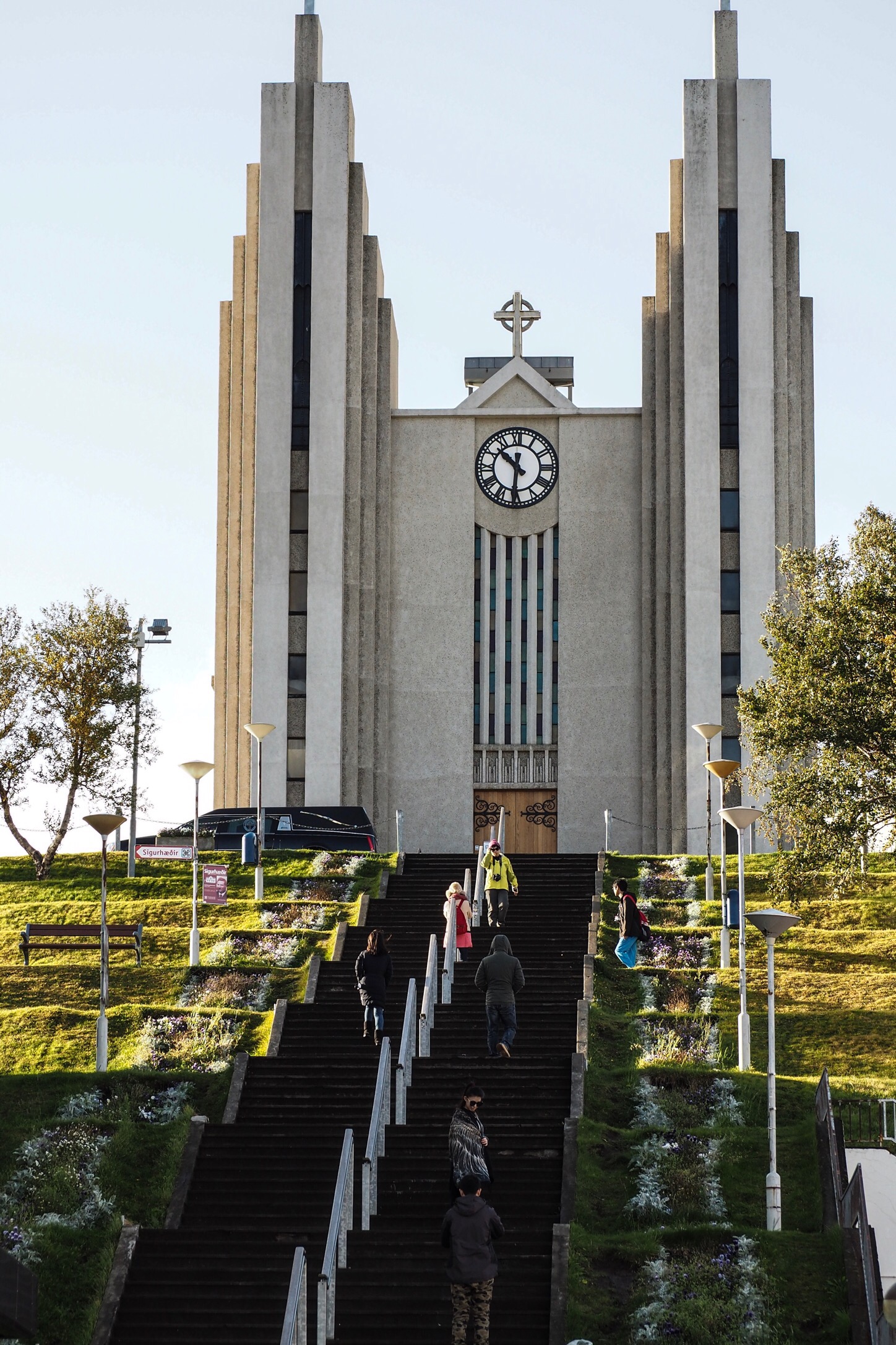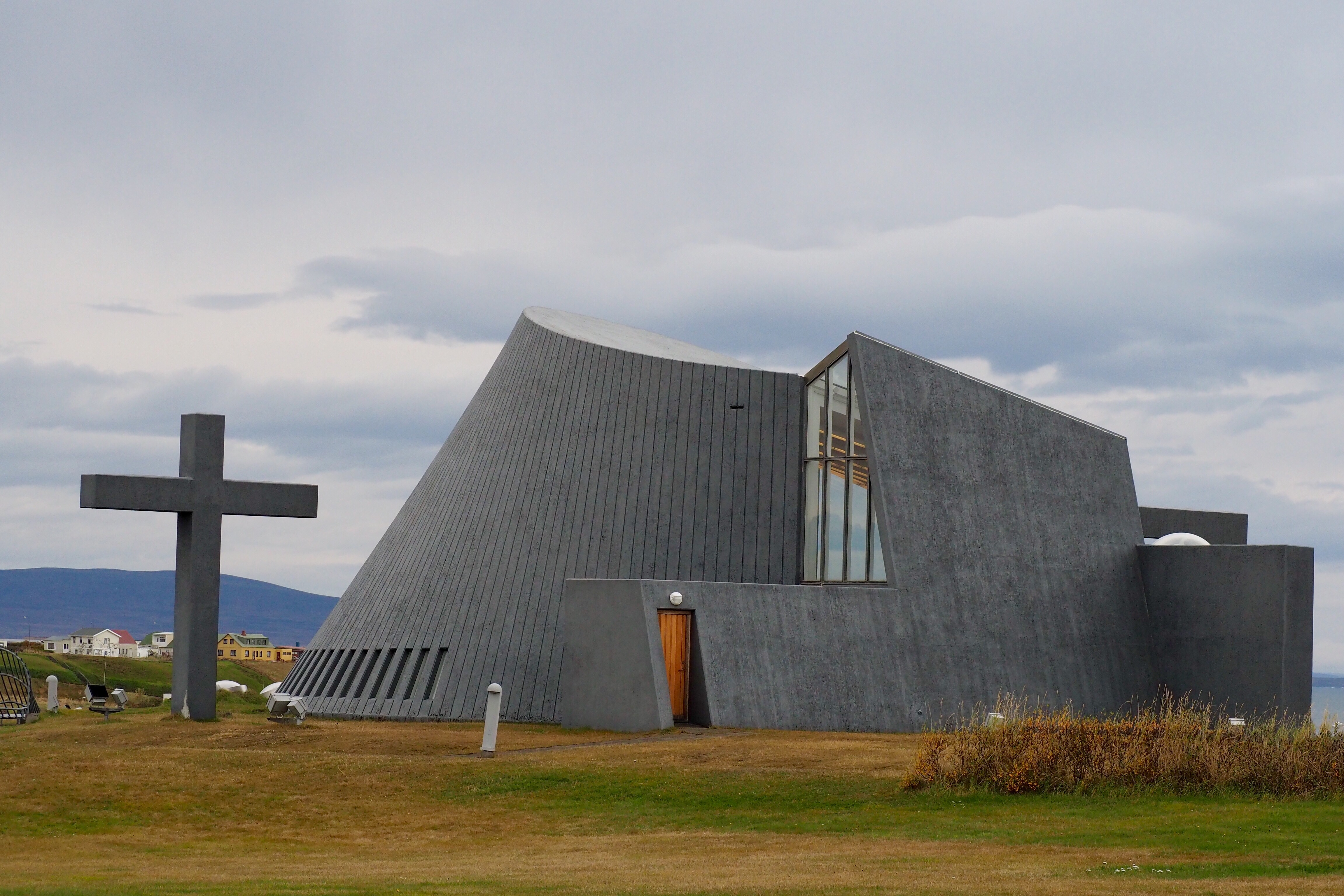 We spent the next morning exploring Akureyri, Iceland’s second largest town with a population of around 17,000 people. Akureyri sits on the north coast nestled beside a large inlet. The town runs down the side of a hill so residents enjoy great views across the water with snow-capped mountains as a backdrop. Dominating the town centre is a very unique, white Art Deco style cathedral with a large number of stairs leading to its entrance. The beautiful botanical gardens were also a highlight as well as the town’s circular shaped concert hall, built in grey stone, and sitting beside the water’s edge.