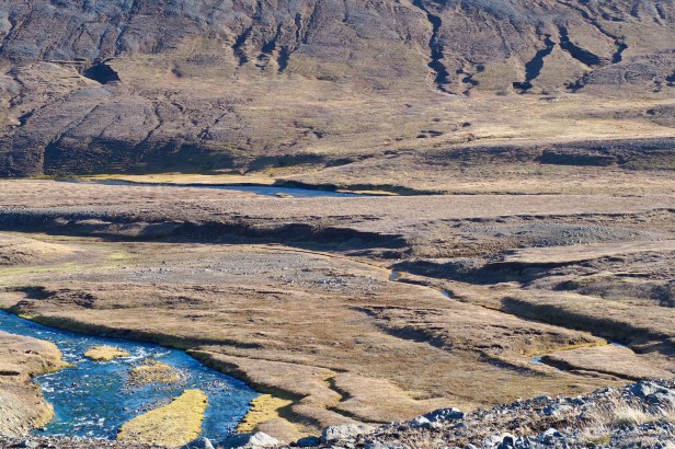 Iceland continues to impress with its natural beauty and astonishing landscapes. Leaving Akureyri in the north we drove toward the fjords in the east. After travelling for several hours through stark and barren volcanic plains surrounded by dormant volcanoes, we yearned for colour and life to return to the landscape. Gradually it began to appear – some grass and ground covers, and then a few small farms, until we reached the fjords, where the countryside turned lush and green again.