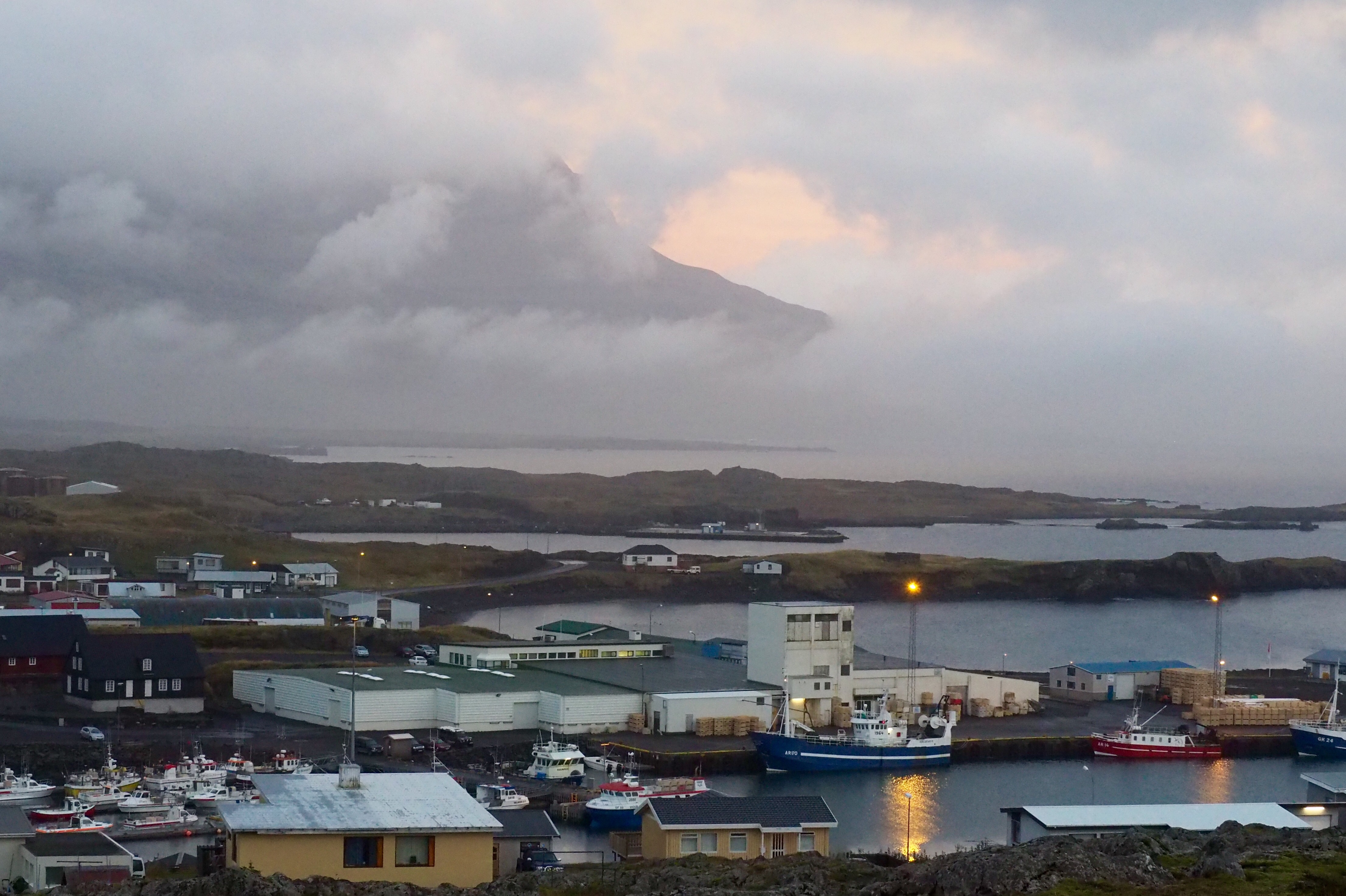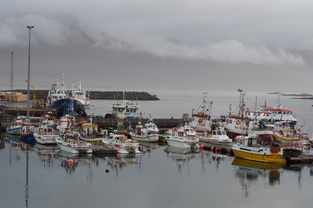 We spent the night at the pretty fishing village of Djupivogur on a southern peninsula in eastern Iceland. This very picturesque town surrounds a small port filled with colourful boats which we had fun photographing as the sun rose the next day. Unfortunately the rain set in soon after and stayed with us for most of the day.