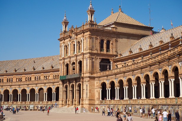 We certainly made the most of our very short time there. A three hour walking tour this morning took us through Seville’s heart where we learned so much about its history and its culture. The imposing Cathedral of Saint Mary of the See (no, not a typo), is apparently the largest in the world. The Cathedral began life as a mosque and still has the original minaret – now the bell tower. We learned about the city’s dark history during the Spanish Inquisition, where those refusing to convert to Catholicism were executed in the town square. We were also surprised to learn that the Plaza de Toros de la Maestranza still hosts bull fights each week from April to October – the last one for the season was held only a few days ago. And we were especially blown away by the stunning Plaza de Espana, built for the Ibero American Exposition, held in 1929.