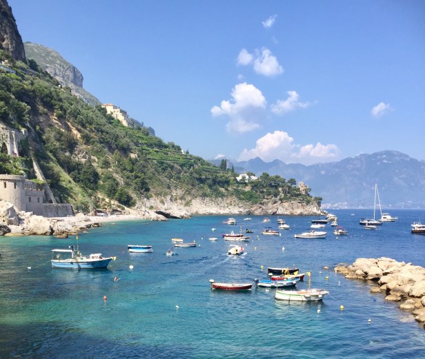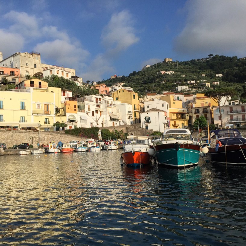 I always feel a mix of excitement and anxiety when arriving at new holiday accommodation. I’m not sure why as the places I book generally exceed my expectations – I’ve become quite experienced at finding places that are good value for money in the right location. Our next apartment certainly didn’t disappoint. It was reached by descending 300 stairs from the road to the water and is 3km from Amalfi in an area called Conca dei Marini. It is old and basic but has everything we need. Best of all we are right on the beach – our balcony looks over a gorgeous cove filled with fishing boats and is serviced by three restaurant/bars. In fact I’m sitting in one as I write this post.
