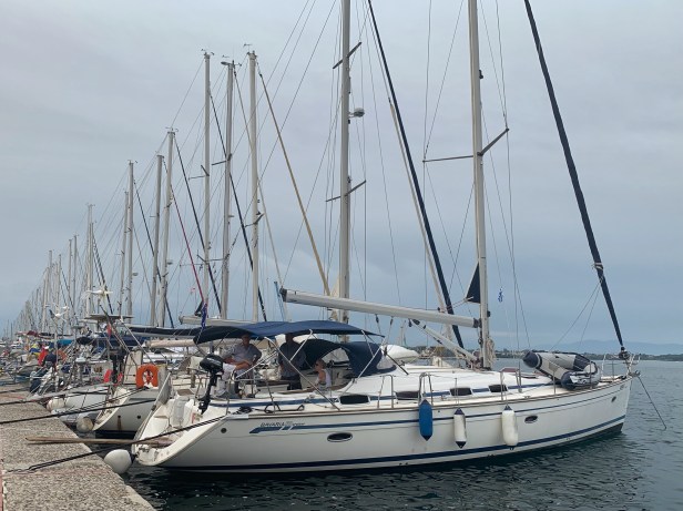 After six days of cleaning, servicing and stocking our boat we’re finally back on the water. Our yacht, Izabela has been sitting in a boat-yard in Preveza, Greece for nearly two years as we were unable to sail in 2018, so she was in need of a very good dose of TLC. On 12 June she was lifted into the water by an enormous crane and we spent our remaining time at Cleopatra Marina preparing to sail and waiting for our remaining crew to arrive.
