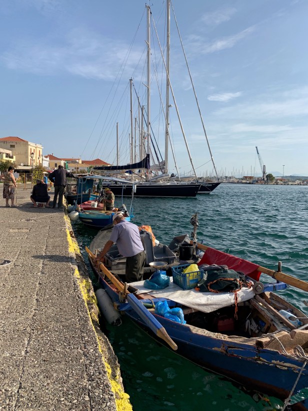 Preveza has a really lovely atmosphere. Every evening the old historical centre of town fills with townsfolk and sailors, strolling around the streets, calling into the shops that stay open until 10.30pm or stopping to chat to friends. Eventually everyone settles into one of the many tavernas for dinner and to talk and eat until late into the night. The food is fresh, tasty and inexpensive. The local wine is basic but very drinkable and around eight euros per litre. Dinner is normally a Greek Salad, some crusty fresh bread, sardines or a local meat dish, and a half litre of Rose to share. That’s pretty hard to beat, as far as I’m concerned!