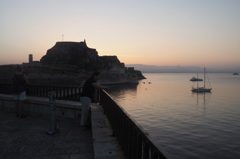 One of our crew has sailed many times around Corfu and directed us to the Old Harbour which is in an amazing location below the fort and a two minute walk to the old historic part of town. There was a taverna on the quay and once we’d secured the boat we wandered over for a coffee and to get the password for their free wifi so that we could tap into it later in the evening. Sailors, like any other travellers, are always on the hunt for free wifi. We wandered into the old town to get some groceries and to look around. As it was Sunday there weren’t many shops open. It was also very hot and not pleasant for exploring. Despite the heat, I was initially impressed with what I saw.