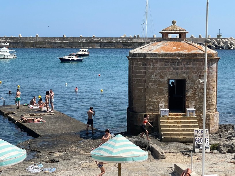 We spent most of the following morning checking in with the coast guard and getting our ‘constituto’, the Italian version of our Greek transit log. We are required to have it stamped at any town with a coast guard but have been told that many boats don’t bother and the authorities are fairly relaxed about it … as they were in Greece. That afternoon some of our party walked up the 250 stairs to the lighthouse and enjoyed an amazing view across the sea. Others wandered about the town, swam at the beach or relaxed on the boat, and of course there was the obligatory visit to the laundromat and stocking up with groceries. The cricket lovers spent the afternoon on the boat watching the first test on a laptop.