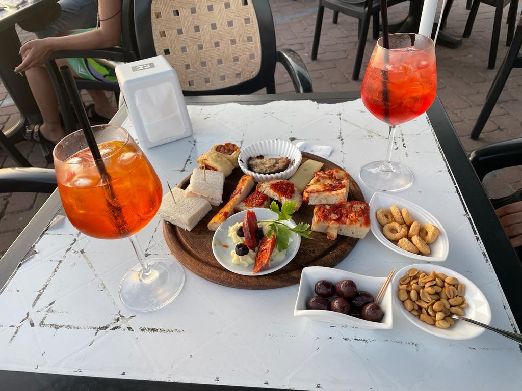 That evening we went into town for a drink at a bar overlooking the water and castle. Like most places in Italy we were given snacks to have with our drinks but these were better than any we’d had before. There were small pieces of pizzas, olives, potato chips, nuts, cheese, salami, mini sausage rolls, eggplant parmigiana and quarter sandwiches. When we ordered a second drink they delivered some more. There was so much food!