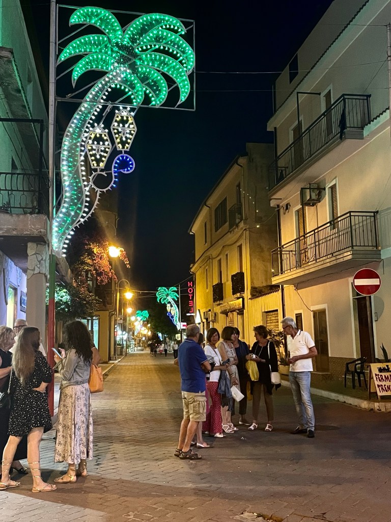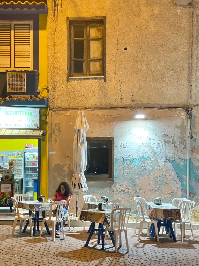 Once the weather had cooled a little, we took the long walk to town to find somewhere for dinner. We stopped at the first restaurant we came to on the edge of town and were heartened by the wood-fired pizza oven and the delicious smells coming from the kitchen. Most of the customers appeared to be locals enjoying dinner with friends and family. Almost everything on the menu featured local fish – swordfish, sardines, red prawns, mussels and anchovies. A few of us ordered a dish of spaghetti, sardines, cherry tomatoes, garlic, chilli and olive oil. It was delicious! It was one of the nicest meals I’ve had on the trip. As we ate, the restaurant filled with locals, some celebrating a birthday, others just catching up for dinner with family or friends. It was a great night and we took the long walk home feeling very satisfied.