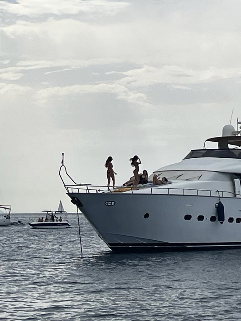 We spent most of the day relaxing on board watching the action around us. Two fishermen motored into the bay both days calling ‘pesce, pesce’ (fish, fish). When called over to a boat for a sale, they cleaned and gutted the fish over the side of the boat before handing them over to their customer. Seagulls squawked around them waiting to swoop on the fish entrails. Nearby, on a large motor cruiser, two young women sunbaked, chatted and took selfies before turning up the music and dancing on deck. There is never a dull moment in a bay full of boats!