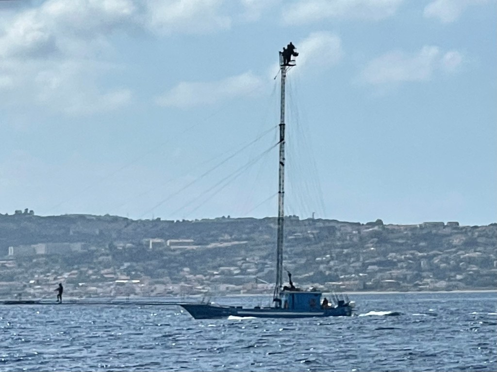 As we approached the north end of the Strait we saw our first swordfishing boats. They were a much larger and more professional version of those we’d seen a few weeks earlier on the east coast of Calabria and were fascinating to watch as they motored around us chasing their prey. Some of the larger boats had more than one harpooner on the long passerelle out front.