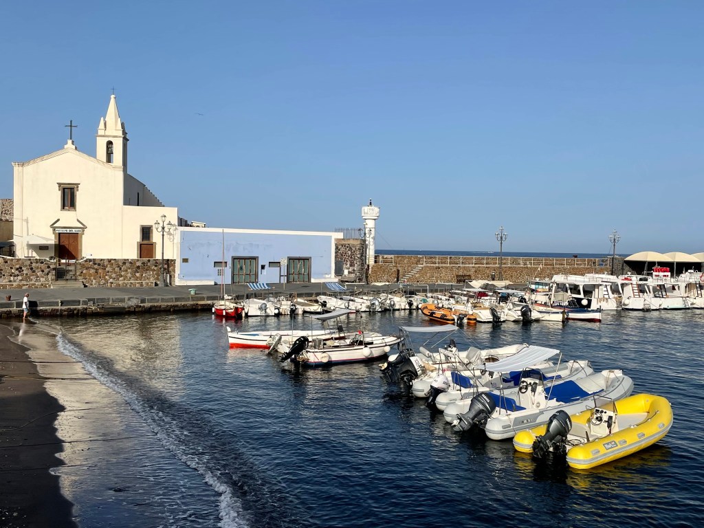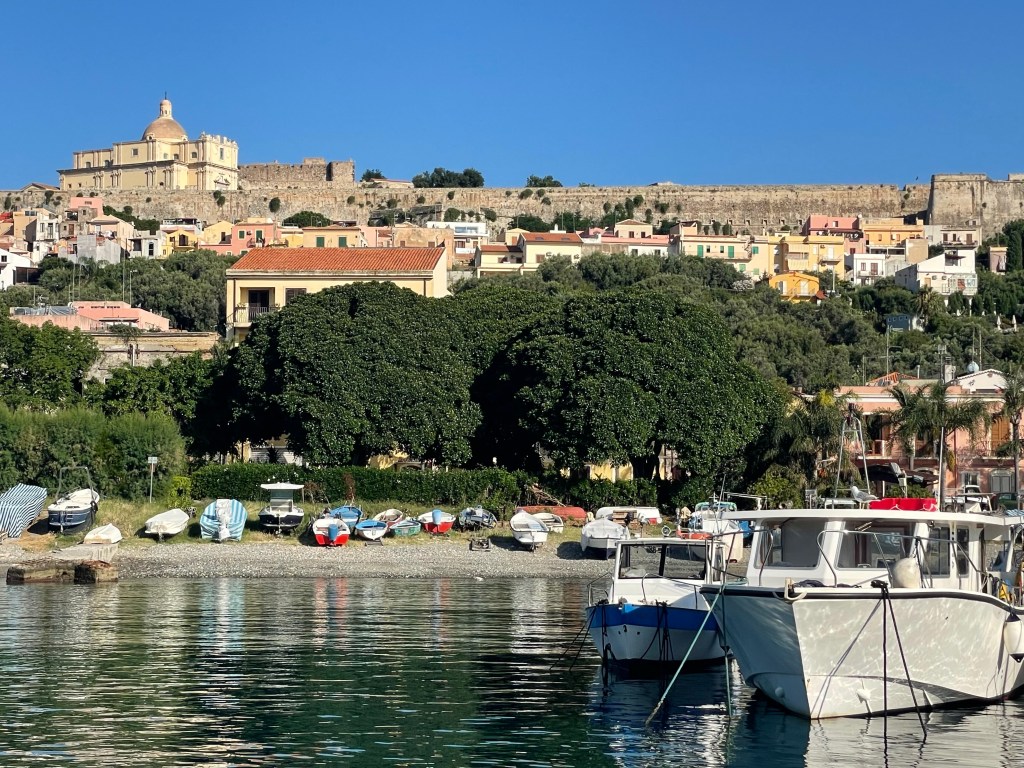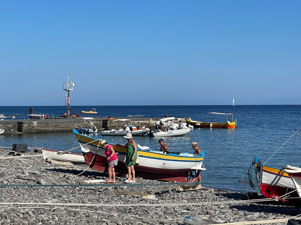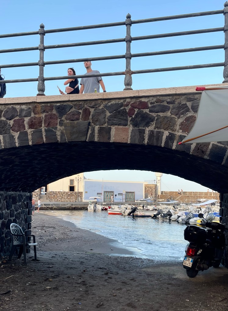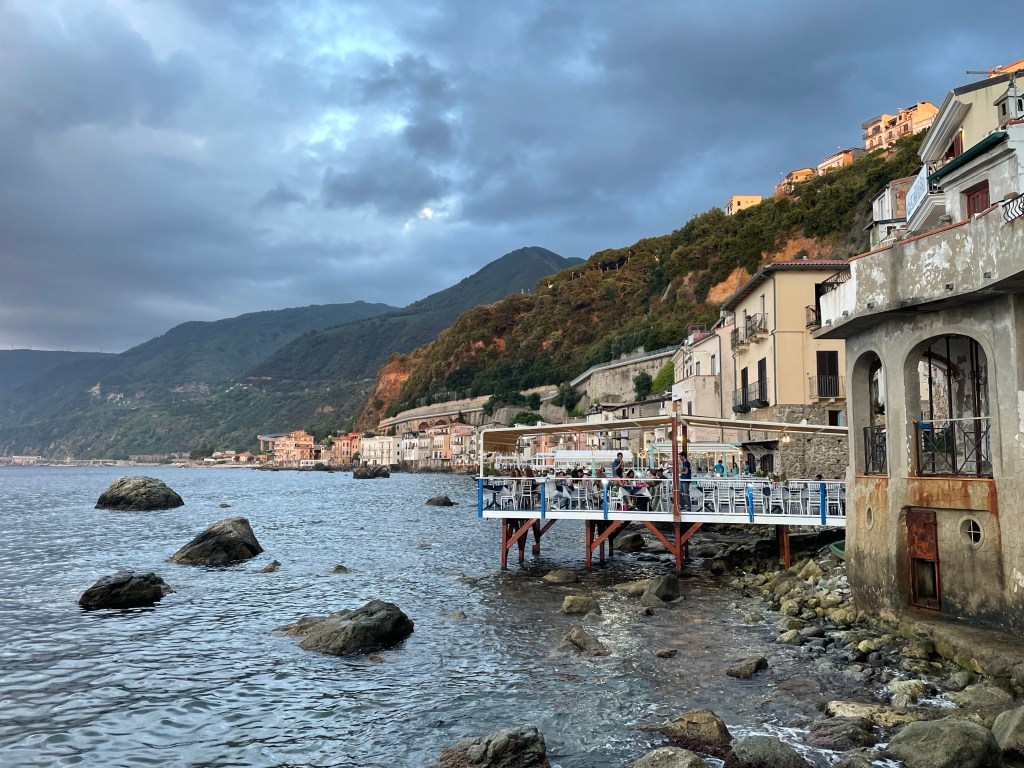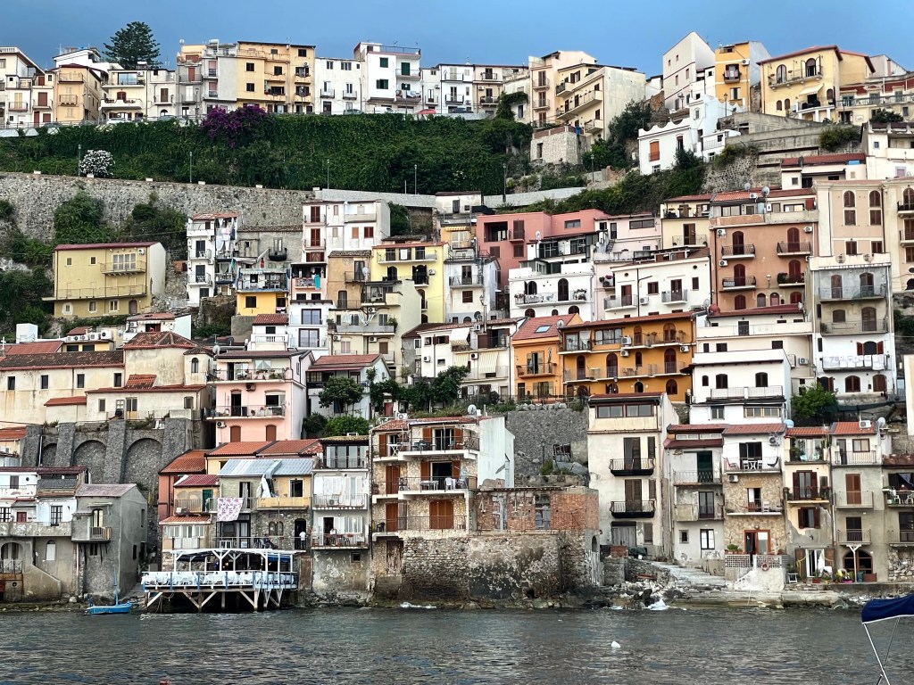 Our destination at the end of the Messina Strait was Scilla, located on the mainland and recommended by friends who’d sailed this region a few times before. We passed a beach on the south side of the town that was covered in umbrellas in front of large resorts. It wasn’t quite what we were expecting, but as we rounded the rocky point, we viewed a totally different side of the town. From the water, it looked a little run-down but also very charming. There was a large castle on a hill overlooking the sea and a church nearby that looked comparatively modern. Colourful houses covered the side of the hill down to the edge of the water. Some had a terrace that sat over the water and we soon discovered that these were restaurants that would be filled with customers later that night. It reminded me a little of a tiny, slightly grungy Venice.