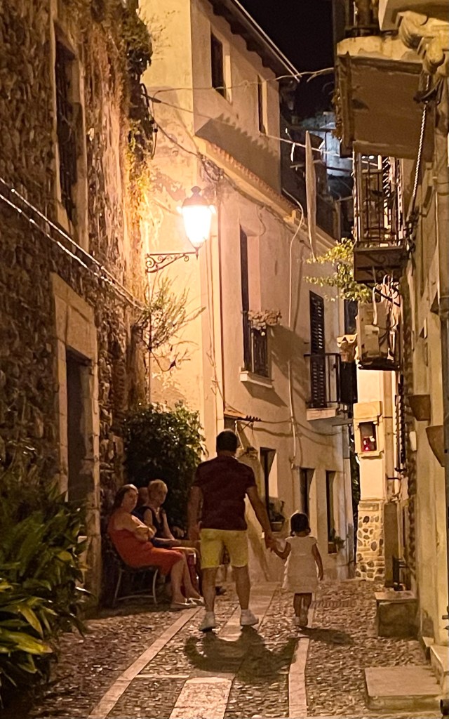 Behind the shops and houses on the waterfront was quite a long narrow road with (mostly) no cars. We found a restaurant and spent the next few hours enjoying the sensational view and very nice food. Unsurprisingly the menu was mostly seafood, including quite a few swordfish dishes. I tried the swordfish involtini stuffed with prawns and spices as well as the spatula fish ravioli in a zucchini cream sauce. Both were delicious! After dinner we wandered further down the street to check out the tiny shops before heading back to the boat and bed. Every few days when we’re feeling a bit awestruck by our beautiful surroundings or experience, one of us will say “how lucky are we”. This was one of those days.