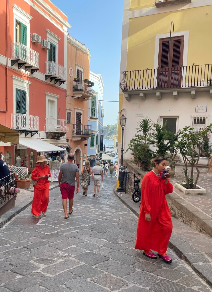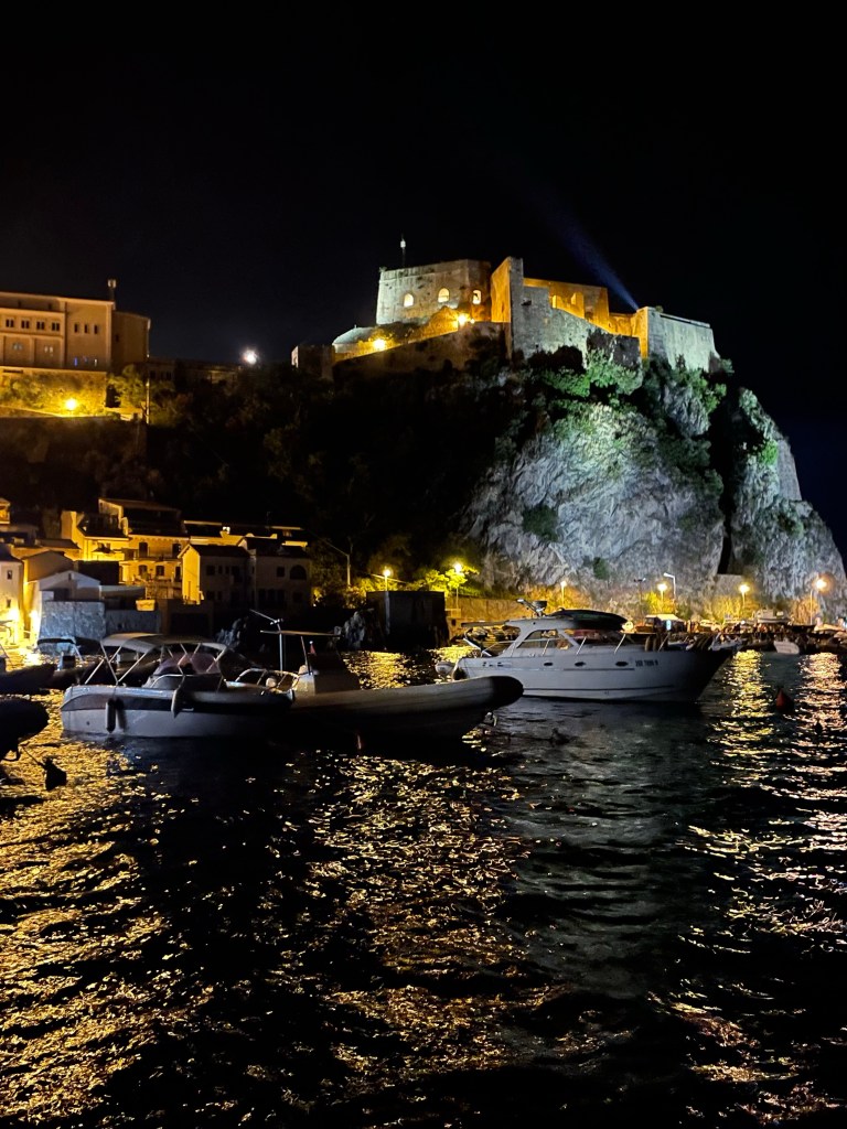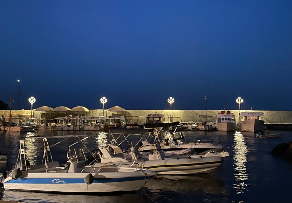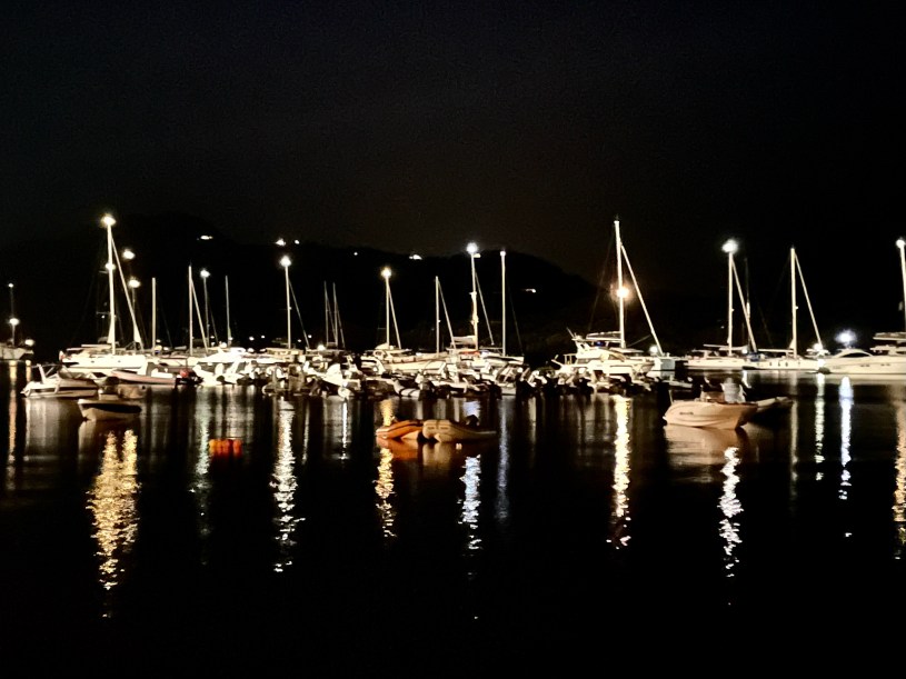 We’d planned to anchor in the small harbour but the sea was rough and choppy from passing ships and ferries and it was very windy. The guys attempted to stablise the boat by throwing down another anchor at the back of the boat. At the same time a young boy came by in a dingy asking if we’d like to pay for one of their mooring buoys. We initially said no, thinking the extra anchor would do the trick but eventually decided it was worth paying the money for a bit of comfort and to properly secure the boat. I called him by telephone and in my very limited Italian tried to explain that we were the boat he’d approached earlier and that we’d changed our mind. Eventually he got the message and zoomed back to help us attach to a buoy. With his broken English he explained that there was a water shuttle service to the town and back which was included in the cost of the buoy and a very nice surprise. We all got ready to hit the town.