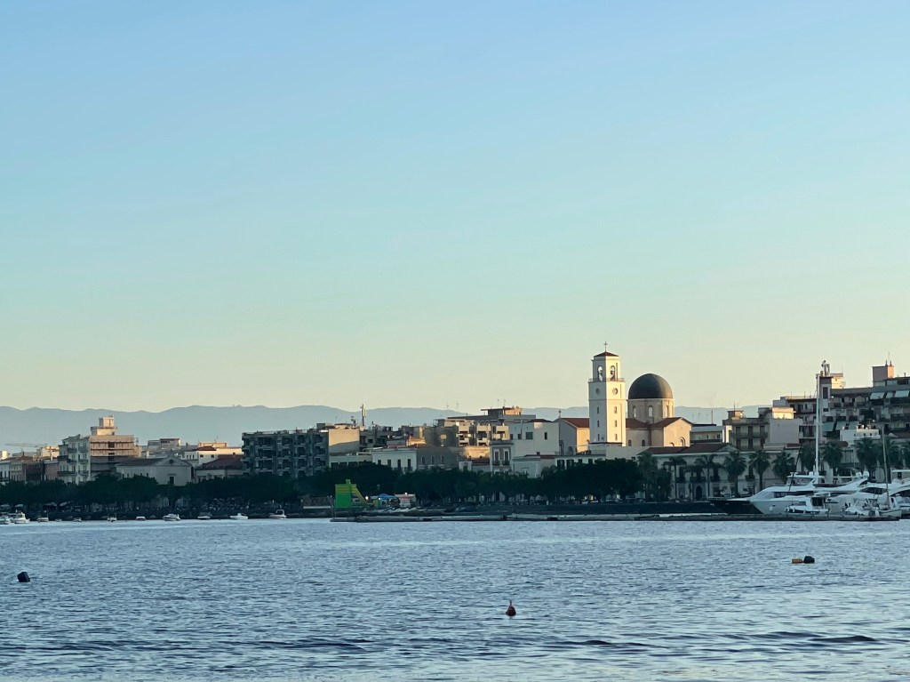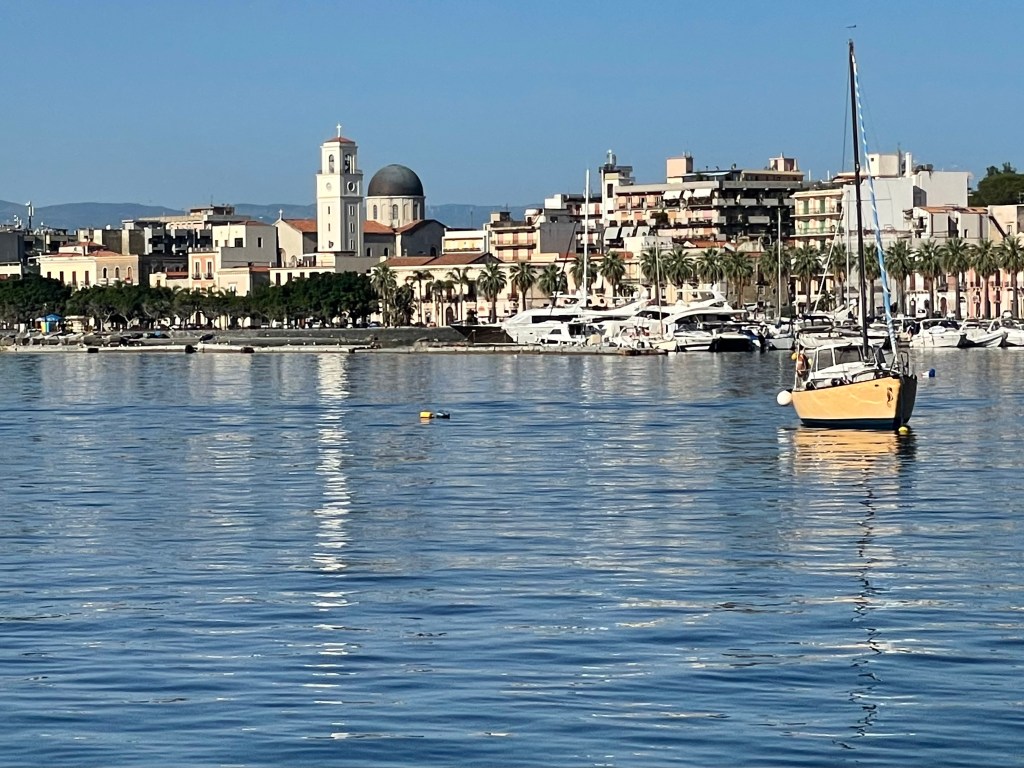 The Messina Strait is the narrow body of water that runs between the mainland and Sicily. The strait has strong and unique tidal currents and whirlpools caused by the different times of high and low water between the Tyrrhenian and Ionian Seas. The Tyrrhenian Sea is warmer and less salty than the Ionian, and the difference in density means that the currents also vary between the water on the surface and 30 metres below. All of this means that you need to pass through the Strait at specific times of the day when the two currents are almost level or are in sailing terms ‘slack water’. Roger, our amazing skipper, sailed us through the Strait with such ease that we wondered what all the fuss was about. It was an interesting journey watching the sea swirl around us and looking like it was very confused about which direction to take.