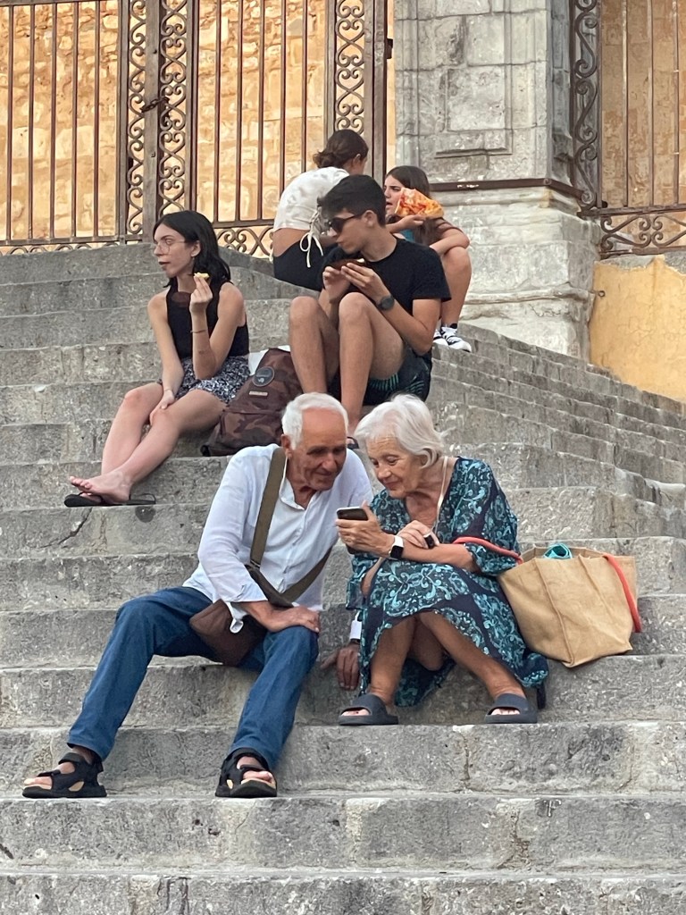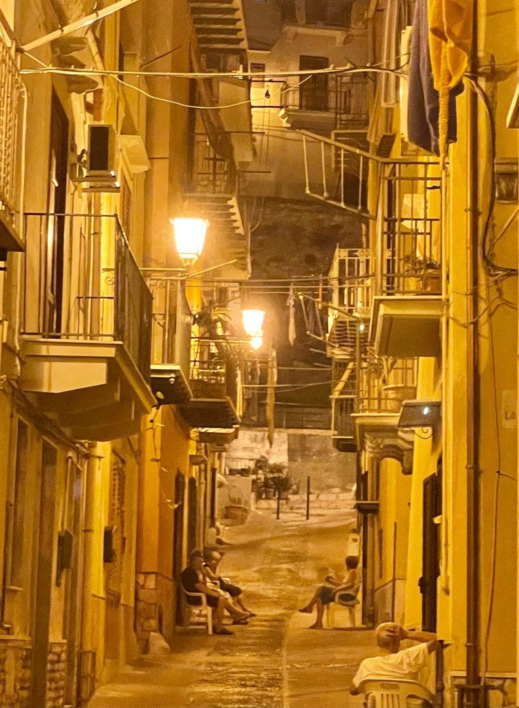It was a beautiful balmy evening and as we meandered back to our apartment, we saw many people sitting on kitchen chairs in the street, trying to cool down. During the day the streets had seemed dirty and a bit ugly. By night, as the streetlights shone on the old cobblestones, they looked beautiful. We couldn’t believe the difference.