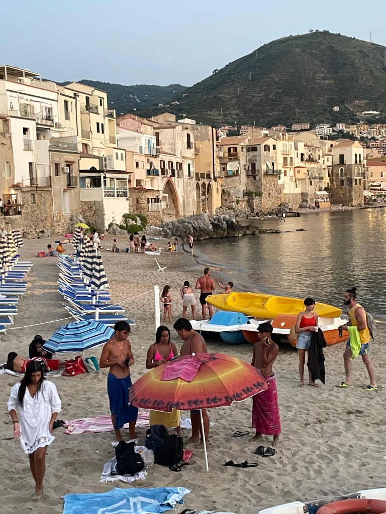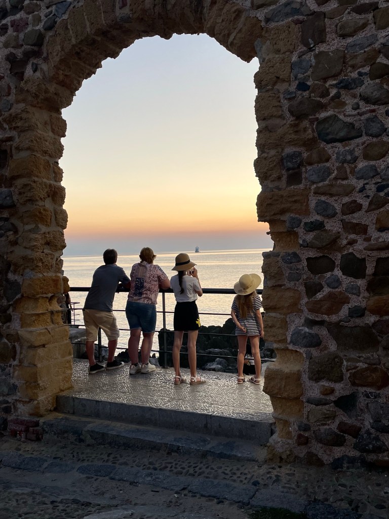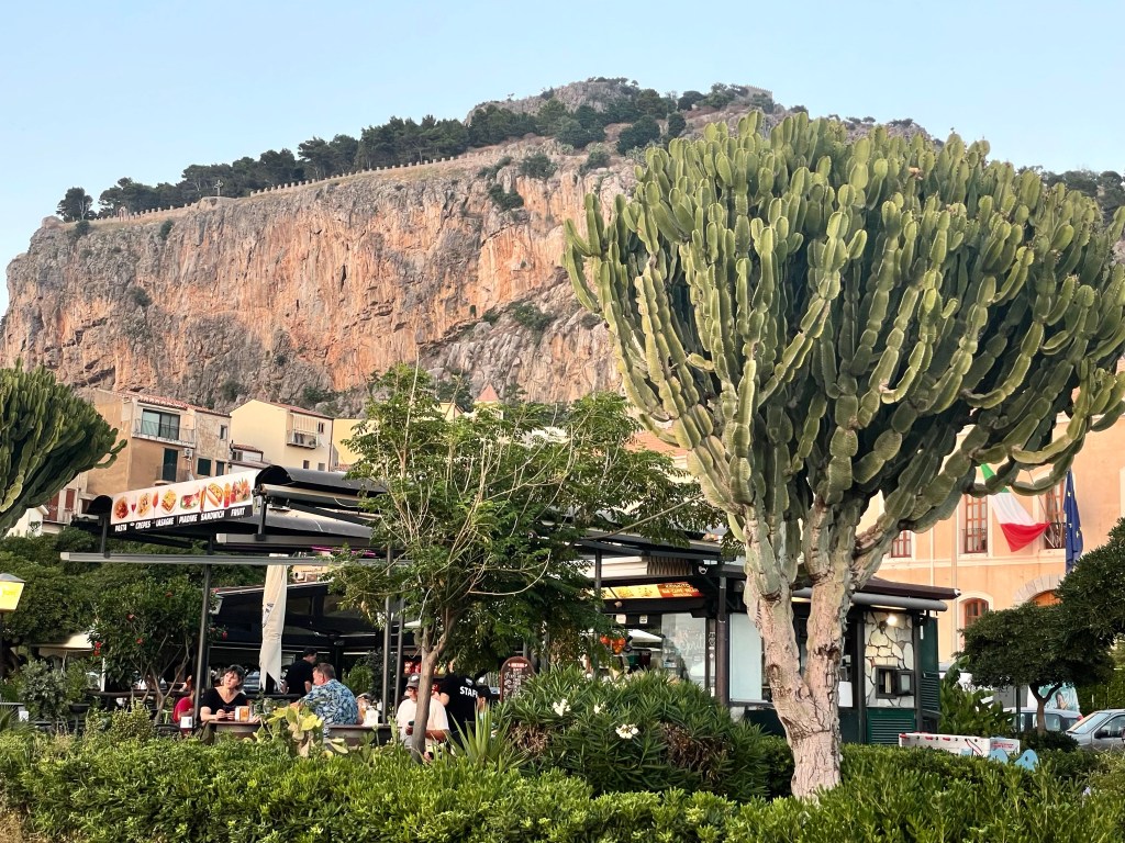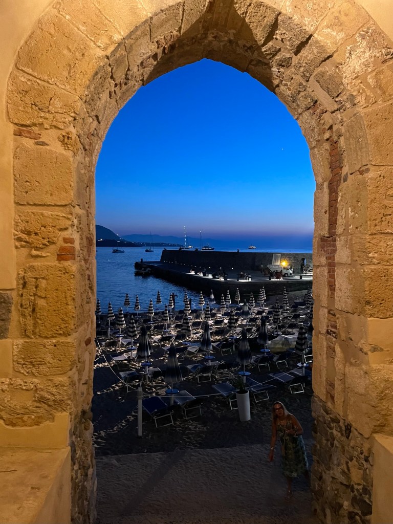 After our drink we wandered the streets looking for a place to have dinner. It was still hot so we headed towards the water looking for some relief. The beach was busy despite it being almost dark. The sun setting on the horizon was stunning and we stood to admire the view. Two archways overlooking the water were a popular destination for sightseeing and Instagrammers. It was an amazing sight and some of us declared Cefalu to be the most beautiful Sicilian town we’d visited so far.