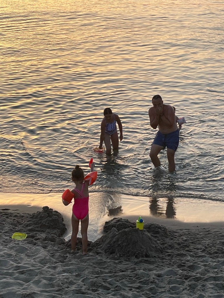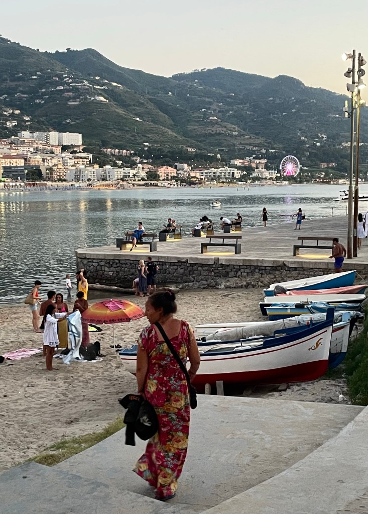 After our drink we wandered back to the waterfront stopping at an ancient Roman bath house we’d read about. The baths are fed by a natural spring and the water is knee deep and icy cold. I took my shoes off and stood for a few minutes in one of the baths. It was freezing but a great way to cool down. Just like the previous night, the beaches were busy with locals and tourists trying to escape the heat.