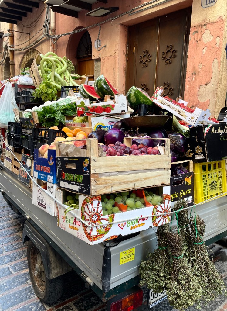 Later that evening when the heat was starting to subside, we took the marina’s free shuttle to check out the old town. We wandered along the stone streets to the Piazza del Duomo, the heart of most Sicilian towns. As we entered, we were again awestruck by the rock and the cathedral that dominated the piazza. The twin towered cathedral of Norman origin, dates back to 1131, and is said to have been erected as the result of a vow made to the Holy Saviour by King Roger II of Sicily when he survived a storm and landed on the city’s beach.