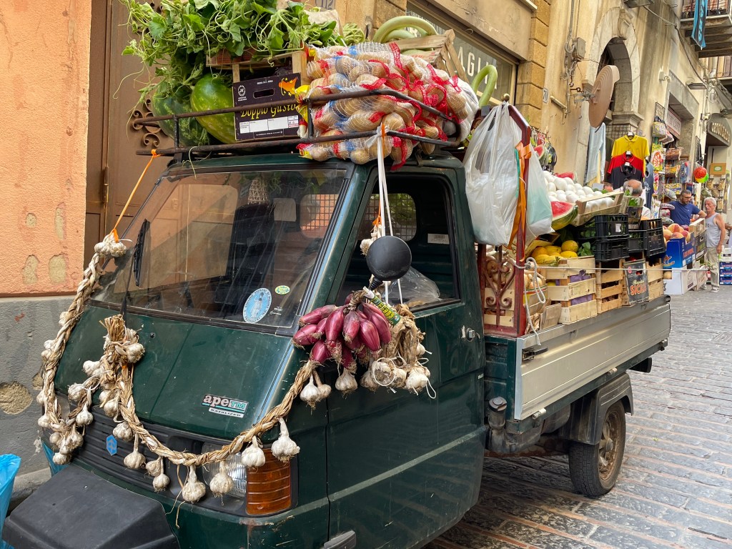 The shuttle drop-off point was a laundromat which are so often hard to find when sailing. It was too good an opportunity to pass up, so the next morning armed with two giant bags of sheets, towels and clothes, we made our way back to town to drop off the washing and to find a café for breakfast. As we walked we heard a man calling as he drove around in a small truck. It was laden with fruit and vegetables and he stopped many times to make a sale.