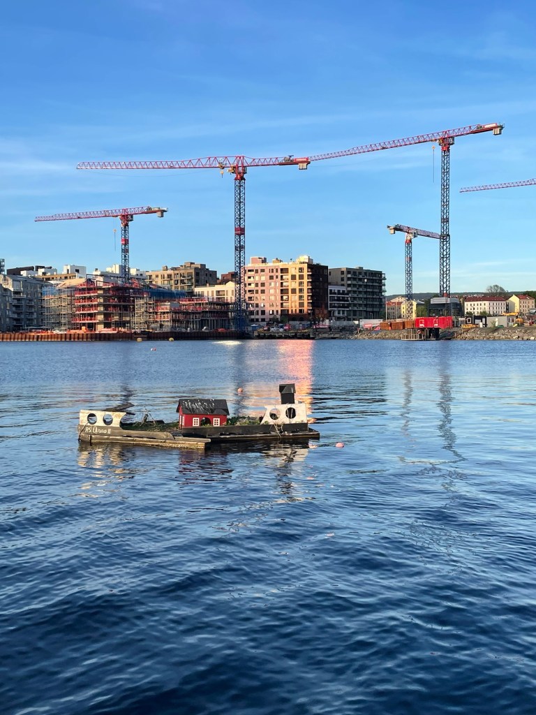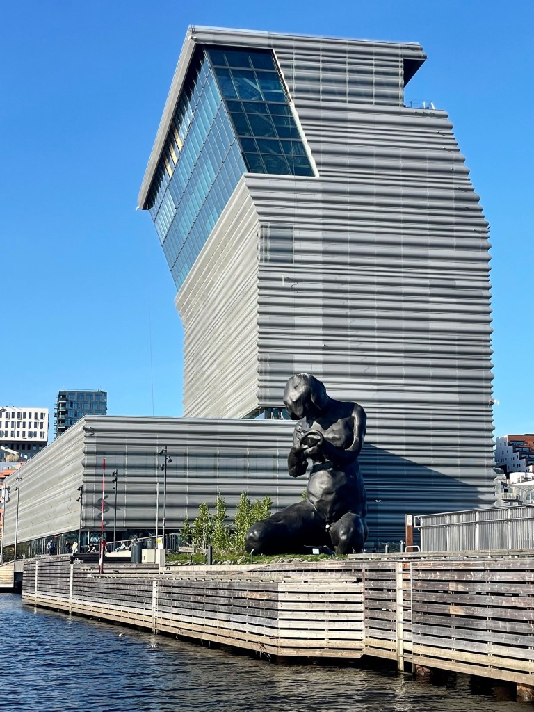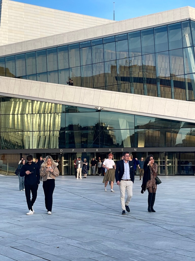 Our hotel was in the centre of the city, just a short walk from the train station. That evening we strolled around the harbour looking for a place to eat. Oslo is a lively city with some interesting architecture and there was much to take in as we walked around the water’s edge, including the Opera House, City Library and Munch Museum. At a small beach we were surprised to see people in their bathers taking a dip. While it was a lot warmer than Iceland, it didn’t feel hot enough to swim. Further along, there were some sauna cabins sitting on the water, each accessible by a small bridge from the shore. The city had a very arty feel to it, with sculptures dotting the land and water. After dinner we headed back to the hotel as we had an early flight the following morning.