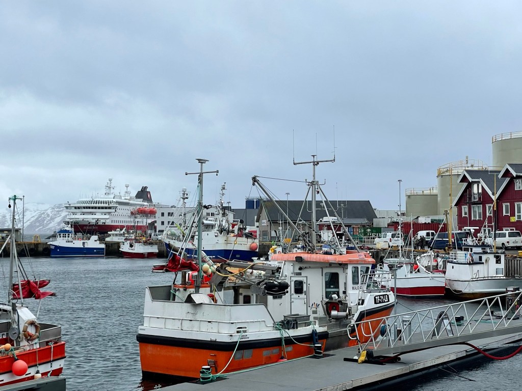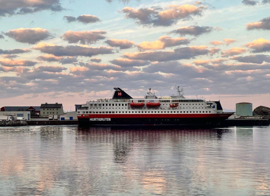 The next morning, we walked down to the dock and boarded the Hurtigruten … our home for the next five nights. The word Hurtigruten literally means ‘fast route’ and is a Norwegian public coastal boat transporting passengers travelling between Bergen and Kirkenes. It is a passenger ferry as well as a cruise and shipping line.