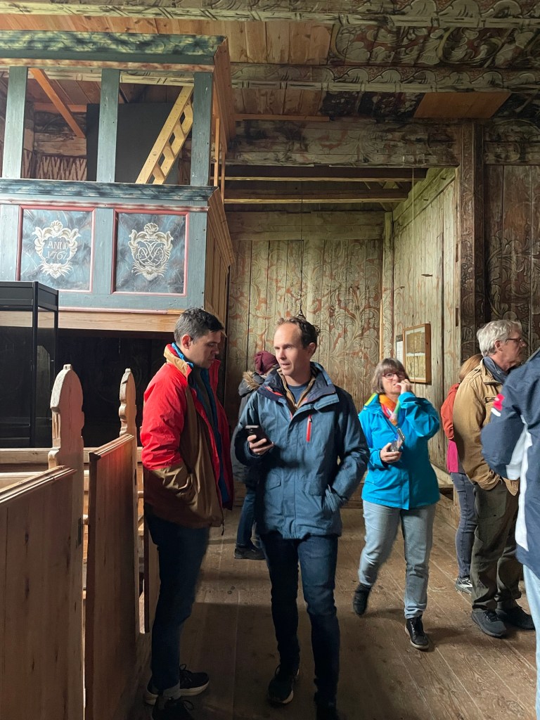 Before travelling the Atlantic Road, we stopped at the very unique Kvernes Stave Church built in the baroque style in the 1600s. The woodwork inside it was amazing. We also stopped at a local tavern and had bacalao for dinner. Bacalao is a stew made from the dried salted cod from the area. It was surprisingly good and we all had a second serve.