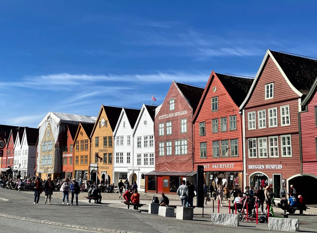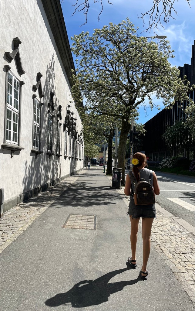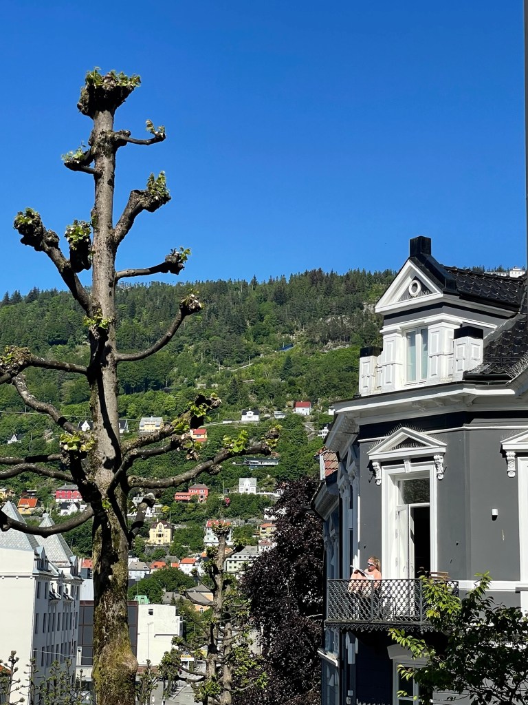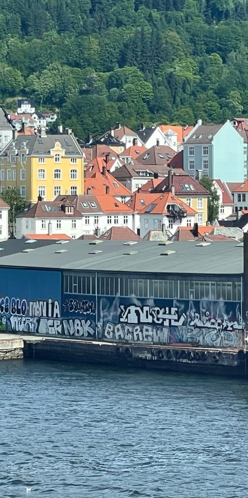 After disembarking the Hurtigruten at Bergen, we took a taxi to the apartment where we’d spend the next two nights. It was in a quiet neighbourhood and an easy walk to the city centre. We discovered later that day that it was also very close to the University of Bergen.