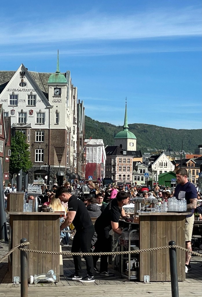 On our second night in Bergen we went back to wharf area to try one of the restaurants in the old fish market. It was a very disappointing meal and we wished we’d gone back to our local pizza restaurant.