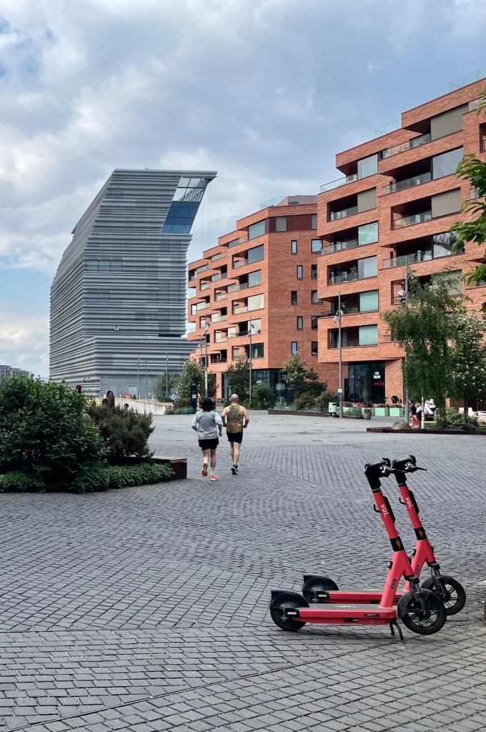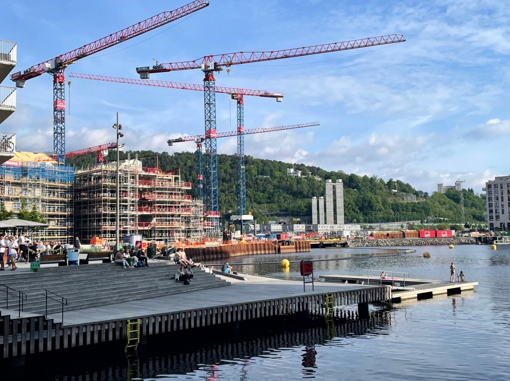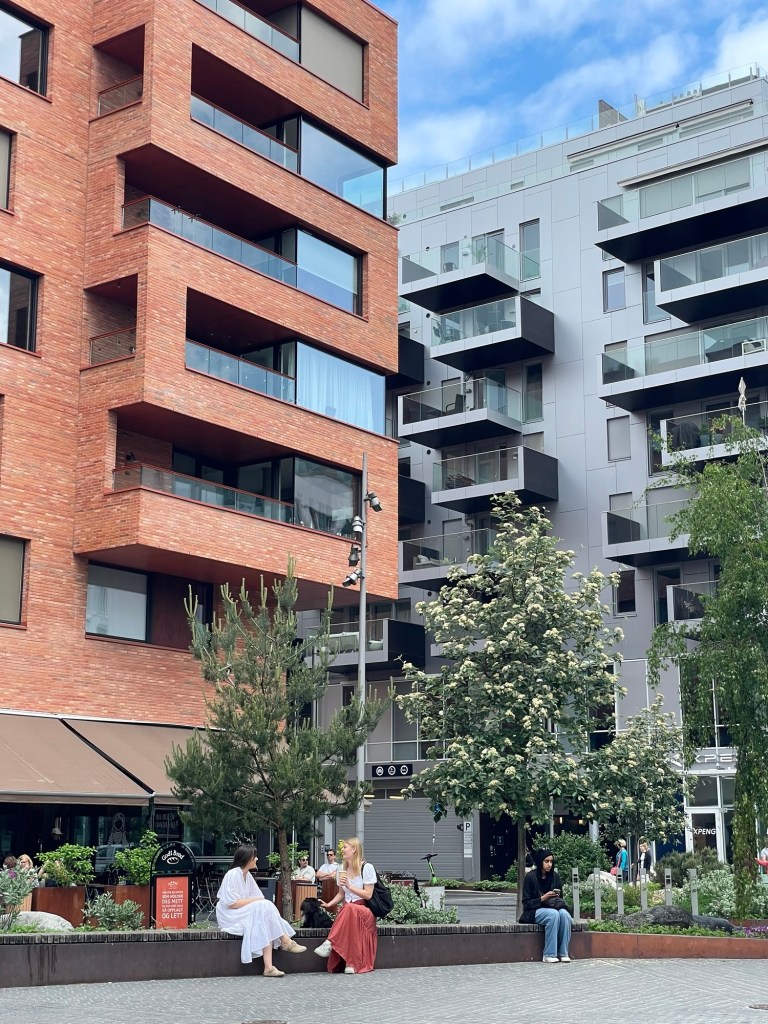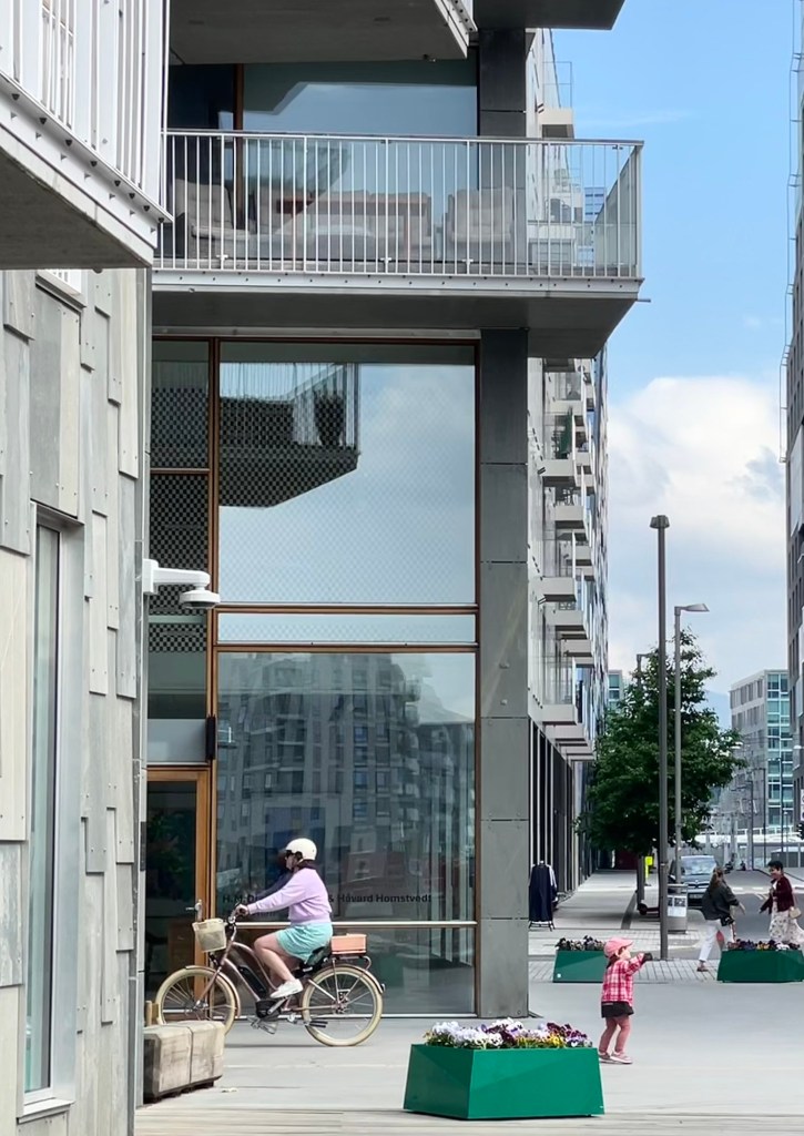 Our apartment in Oslo was in the Bjorvika neighbourhood which is very close to the city centre but looks entirely new.  Most buildings are five-six level apartment blocks, in many different designs, with some overlooking water. There are many bars, cafes and restaurants and it is a popular area for locals and tourists alike. We were all exhausted from the long train journey so had dinner at a nearby Lebanese restaurant and headed home to bed.
