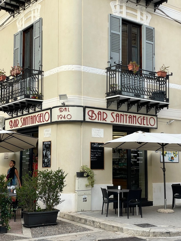 We found a place to eat, our expectations high after our beautiful meal in Licata. As we walked into what appeared from the outside to be an indoor restaurant, we discovered tables set under an open sky as there was no roof. It was a beautiful setting and the waiter/owner was a quite a character with a quirky sense of humour, but unfortunately the food was very ordinary. We made up for it by visiting the gelato shop back at the marina and enjoying our first Italian ice cream for the trip.