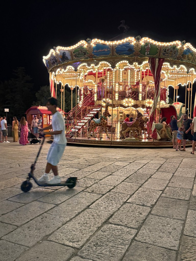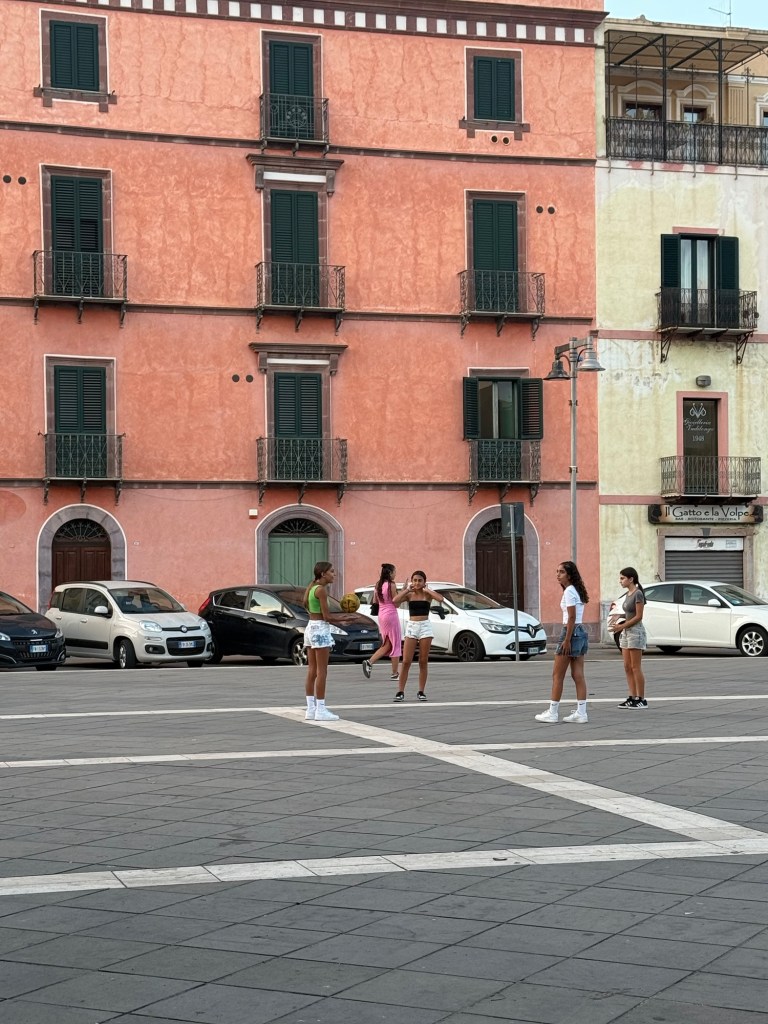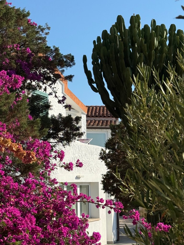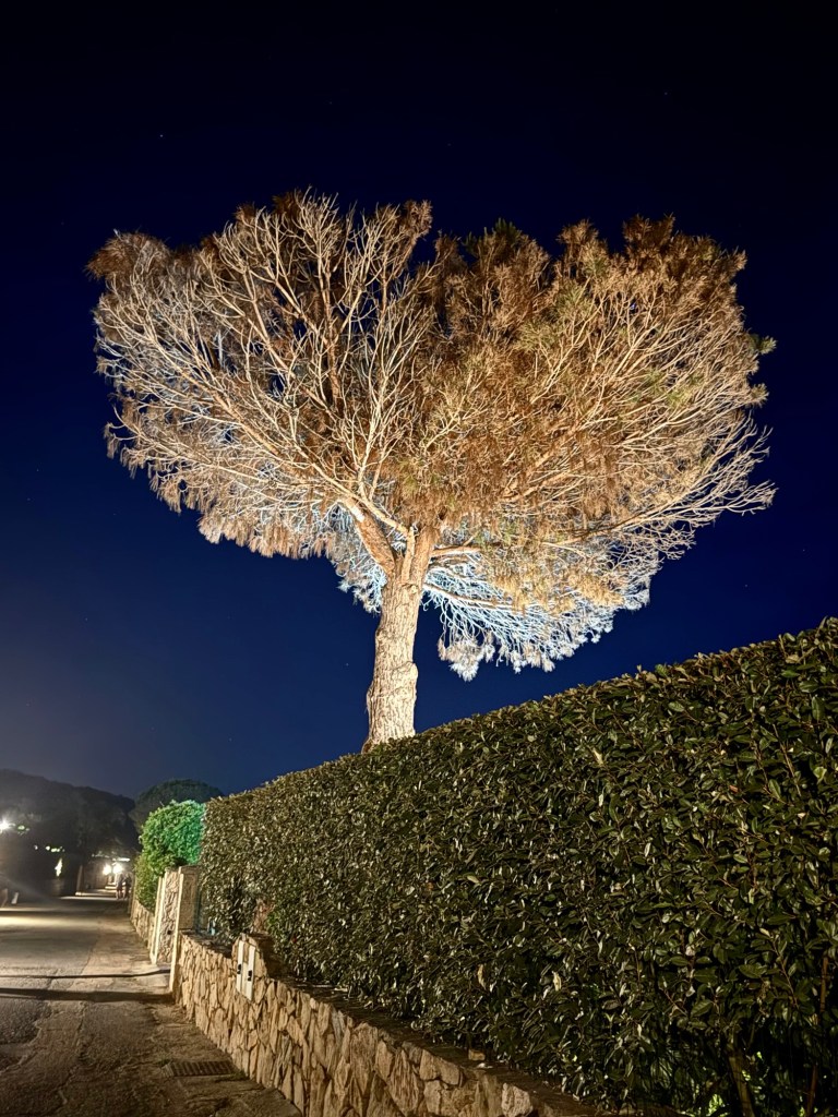 Our marina at La Maddelana on the island of the same name, was very close to the centre of town. The waterfront is lined with bars and restaurants. The street behind, with more restaurants and shops, winds around to a large piazza. We spent the afternoon wandering in and out of shops and I made a much-needed hair appointment for the next day. After dinner that night we walked through the town and further along the waterfront. It was a beautiful night and every bar and restaurant was filled with people eating, chatting and laughing. La Maddelana felt like such a happy town!