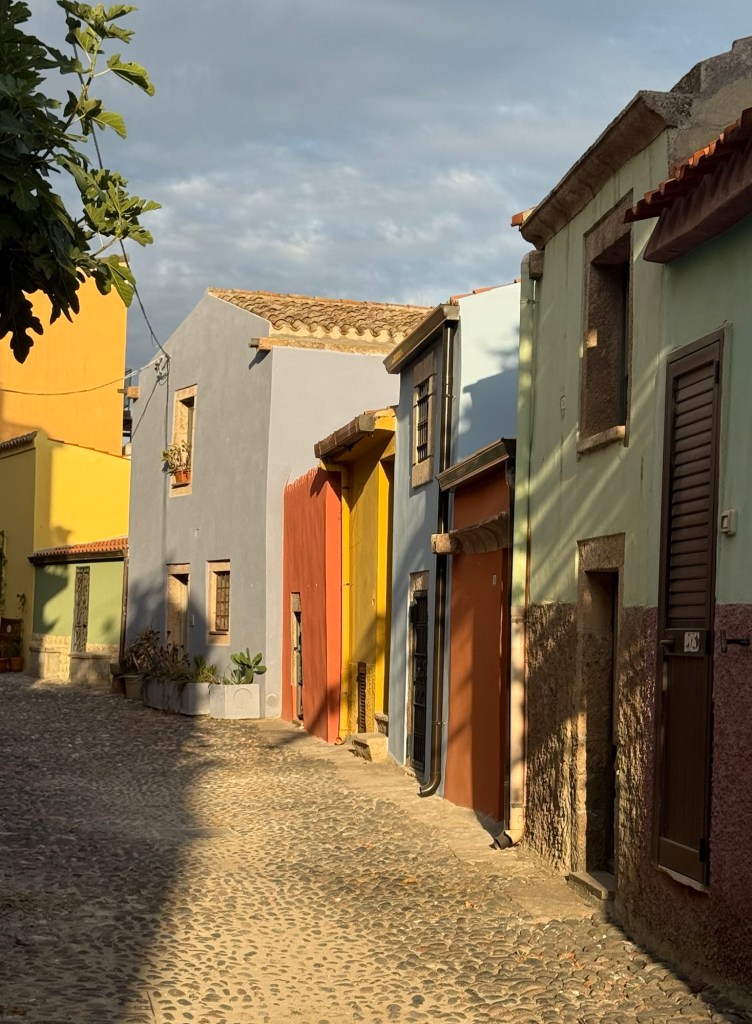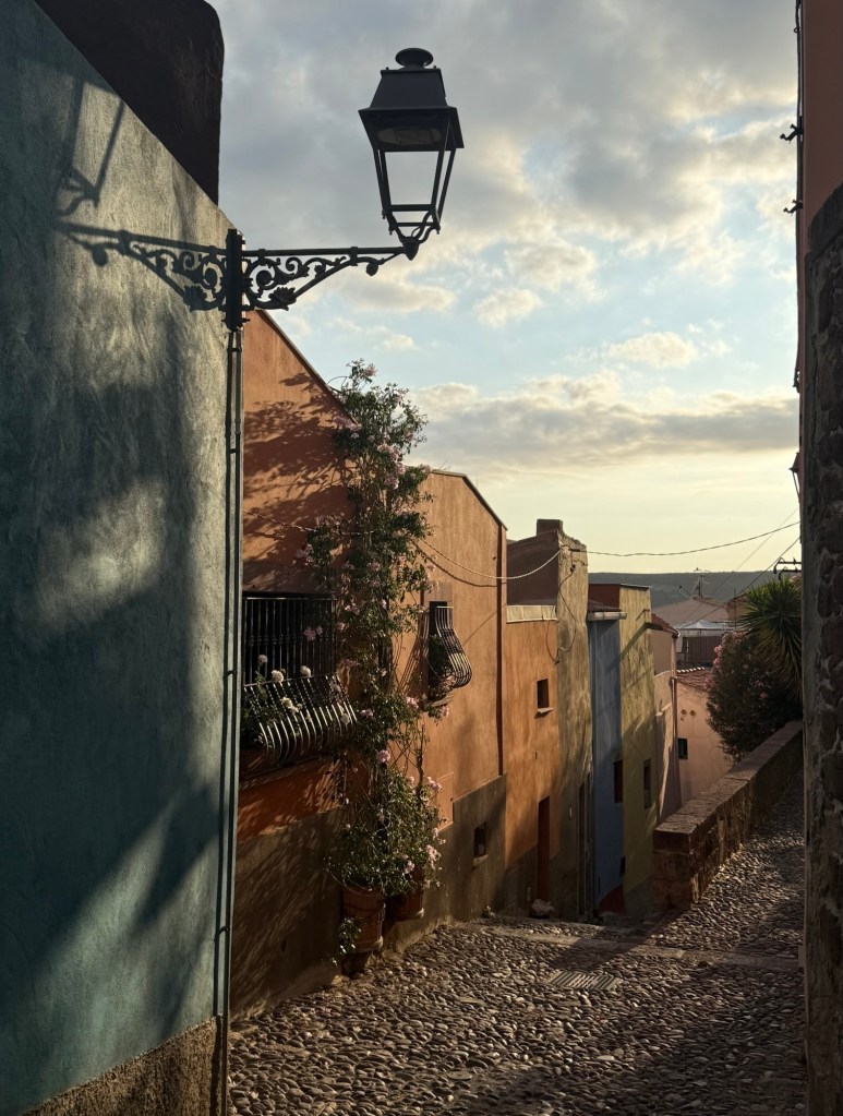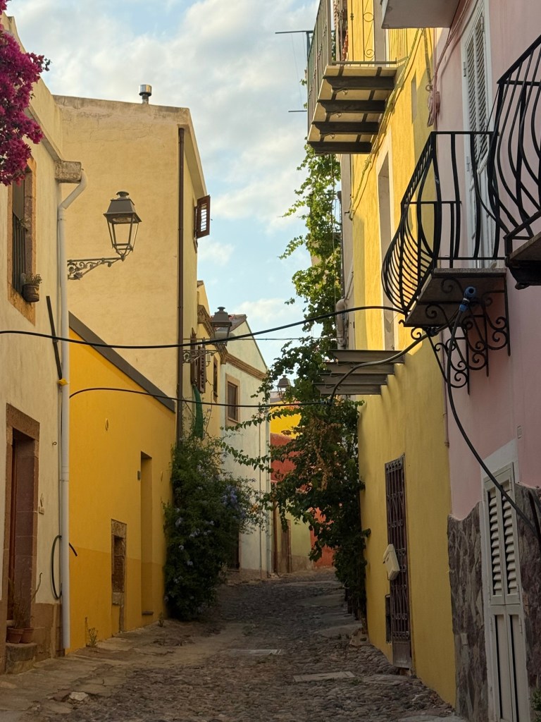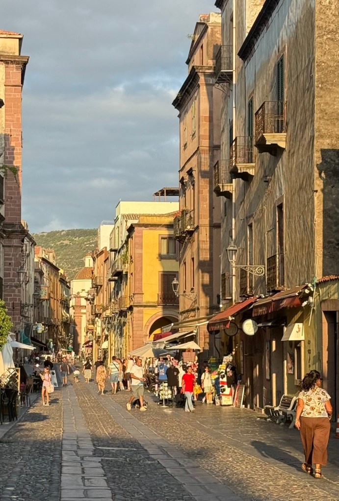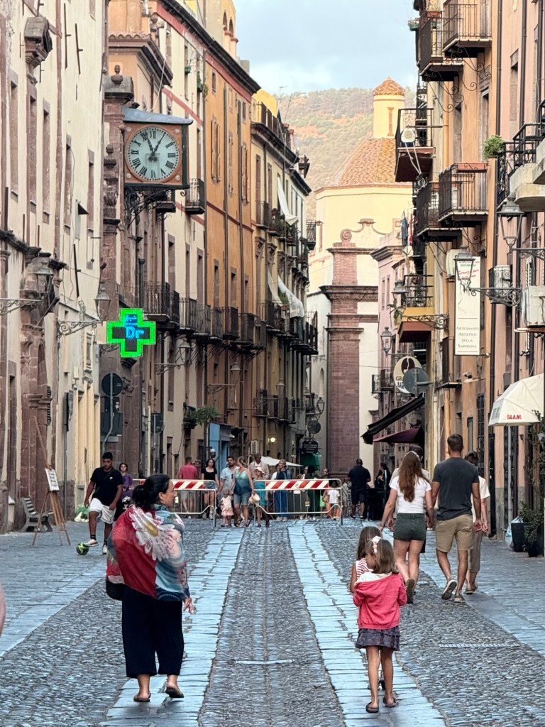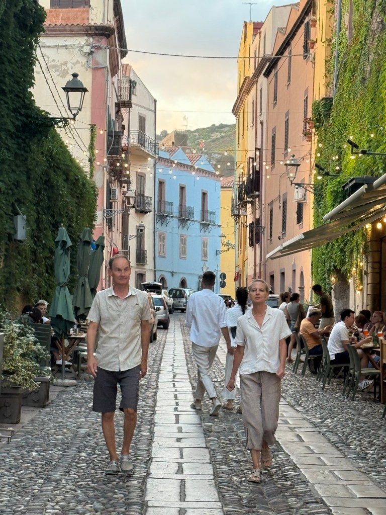 The main street of Bosa is paved in basalt and cobblestones and lined with shops, restaurants and 18th century houses. The following night we walked back into town for dinner and a wander. The street was filled with families shopping and dining and had a really nice atmosphere. We’d all fallen in love with Bosa and would be very sorry to leave.