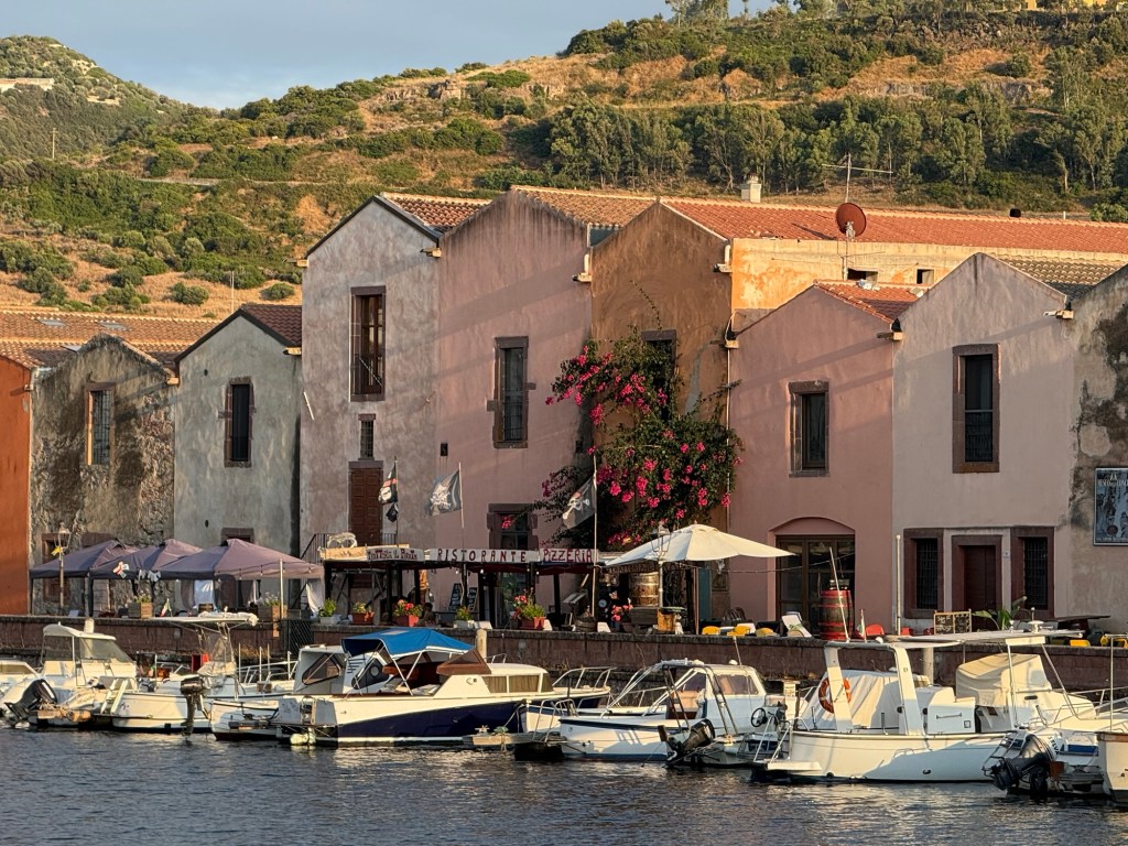 Bosa is located about 3km inland and is the only town in Sardinia built on the banks of a river, making the surrounding countryside green and fertile. It has a population of around 8,000 and is known as one of the most beautiful villages in Italy. That night we ate dinner at the marina’s cool and colourful Tiki Bar and made plans to extend our stay as we wanted to see more of the town.