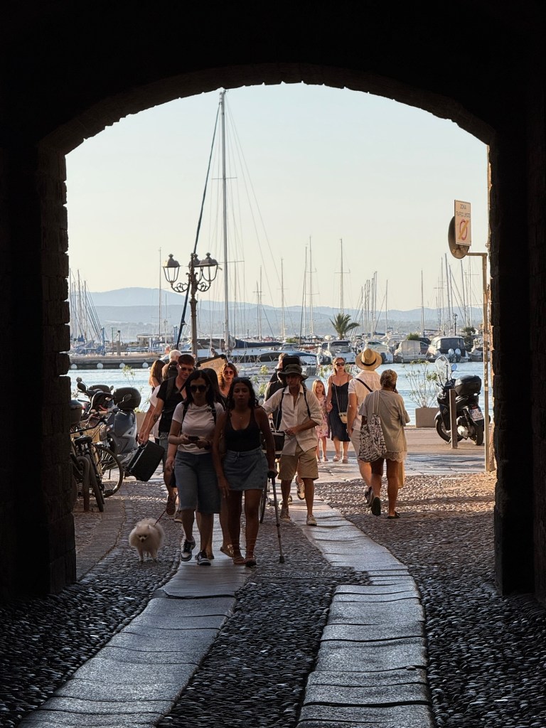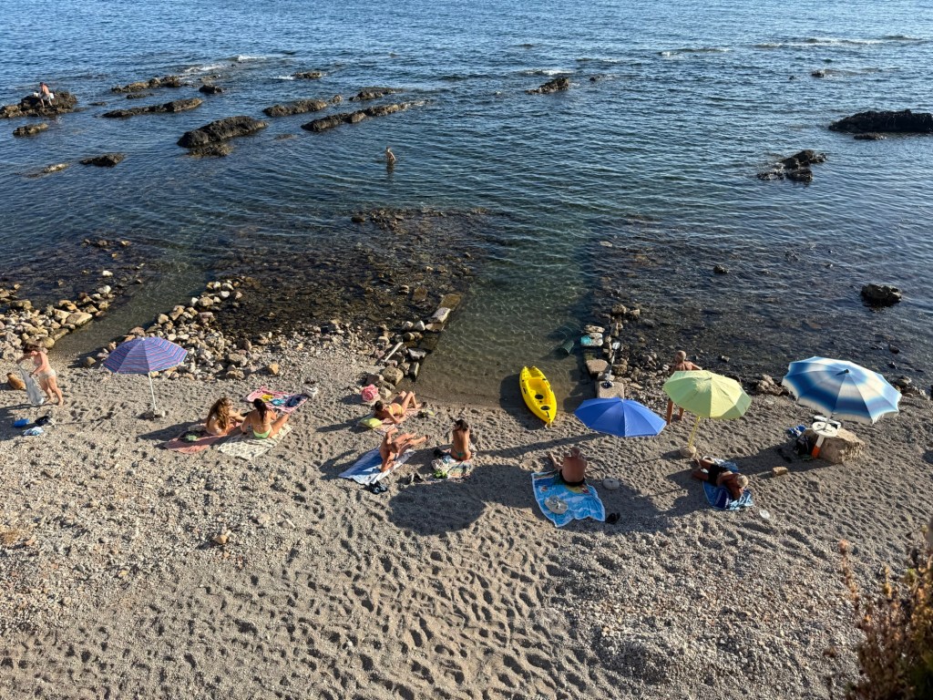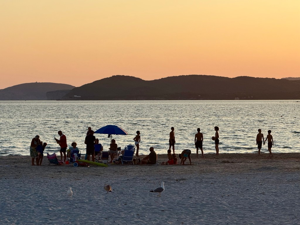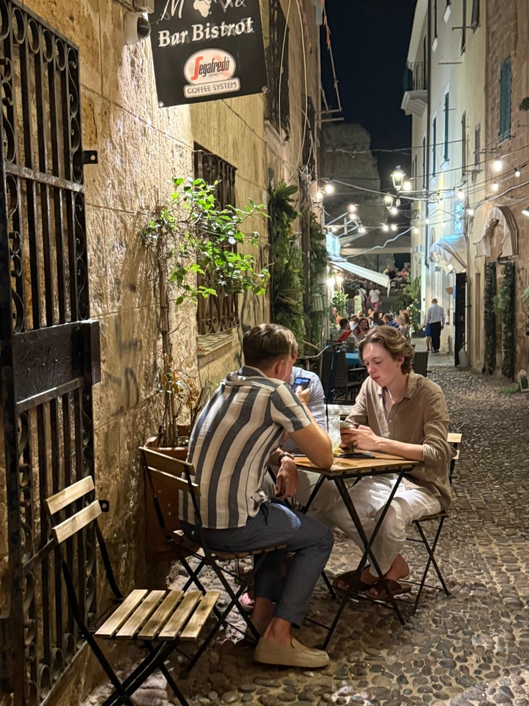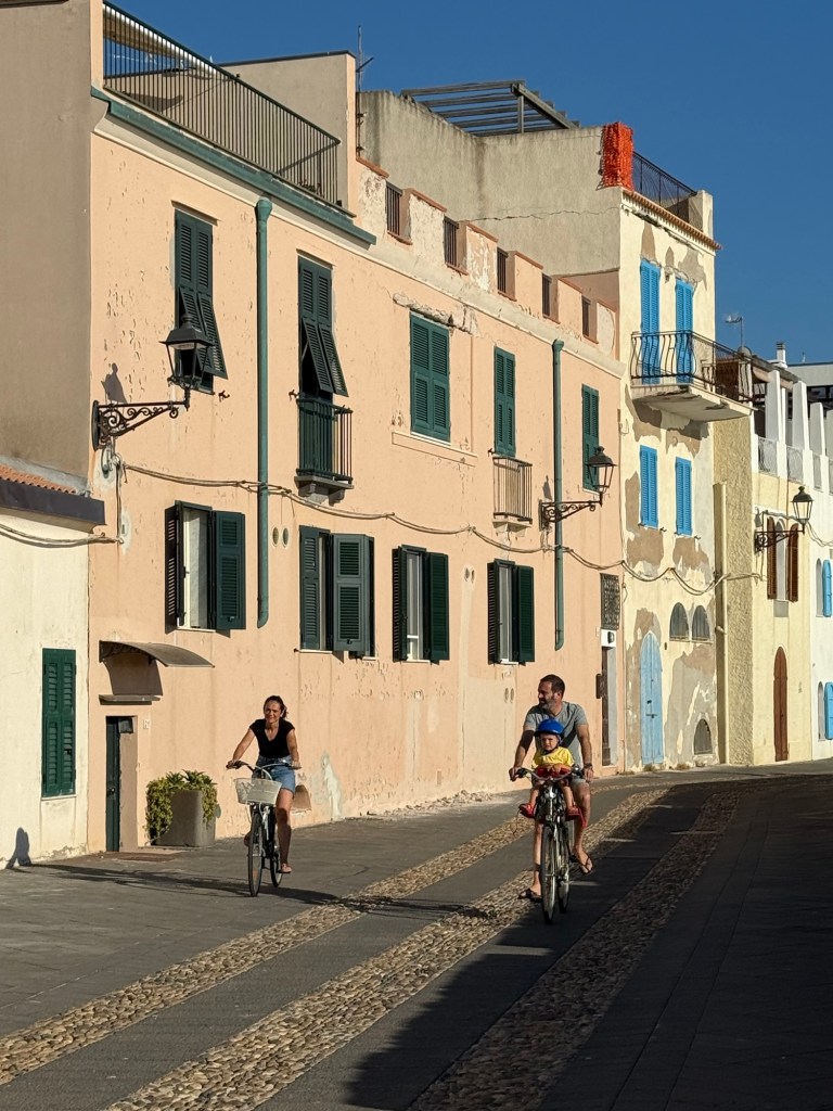 Alghero was the destination for our last week of sailing, starting with a night on anchor in a nearby bay. Two of our crew were leaving the boat the following day so this was their last chance for a swim in the beautiful, clear turquoise water that we’d enjoyed all around Sardinia. From the boat we could see a few large resorts and Spaggia le Bombarde, a long sandy beach packed with people swimming, playing or sitting under brightly coloured umbrellas.