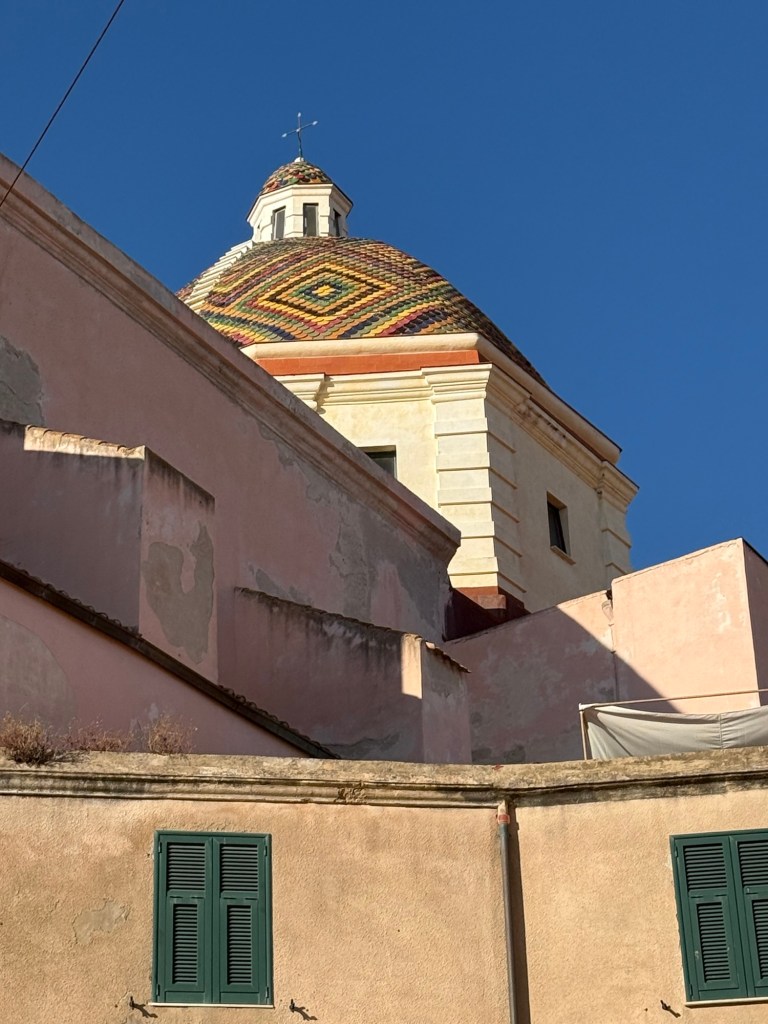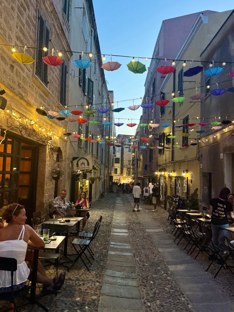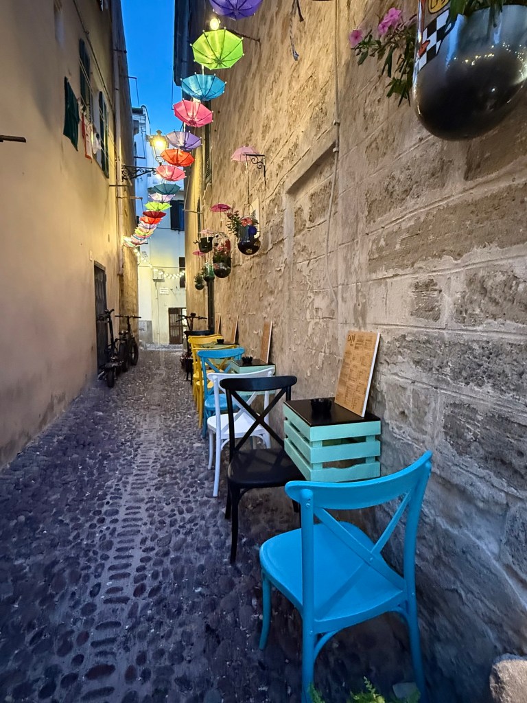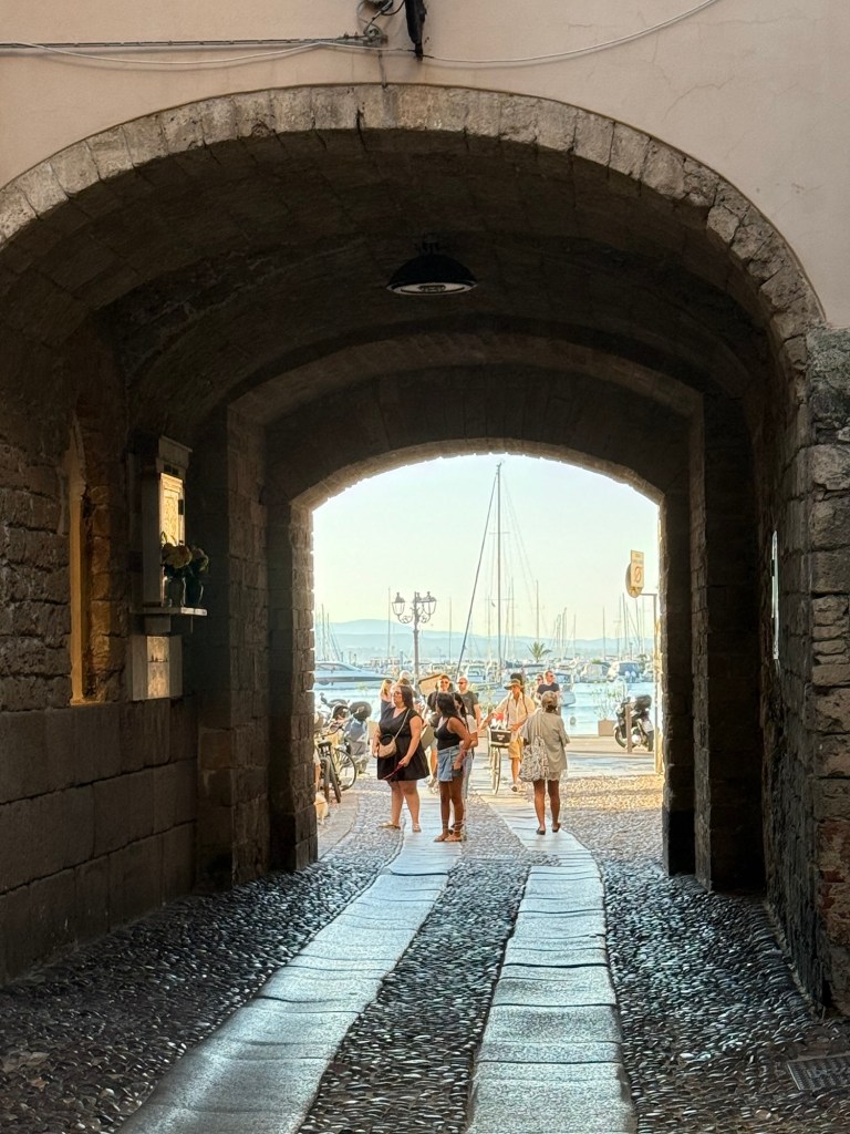 Our marina in Alghero, located beneath the ancient city walls, gave us easy access to the old town. From our anchorage we’d seen a large ferris wheel dominating the skyline. Now it was in full view not far from the harbour. That night after a farewell dinner with our departing crew, we wandered about the old cobblestoned streets. By then, they were filled with people out for dinner and to shop. Like many old town centres in Europe, the streets are lined with restaurants, bars, gelaterias and souvenir shops. Alghero is famous for the red coral found in the water around the harbour and is featured in many jewellery shops. The city is also known as little Barcelona, as almost a quarter of its inhabitants speak a local dialect of the Catalan language. The Catalans began inhabiting the city in the mid-1300s, when Sardinia belonged to the Crown of Aragon and continued to do for the next 400 years. As a result, the city still has a strong Spanish influence, which is also evident in the architecture and food.