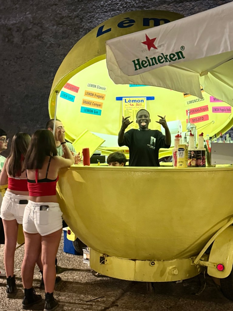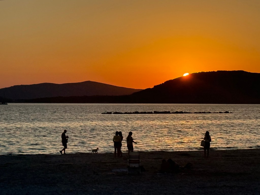 Our walk to dinner that evening took us along a wide promenade that runs behind the beach. There were so many people, all out enjoying the cooler air, sometimes stopping to chat with friends or enjoying a drink at one of the busy beach bars. It was the perfect place to watch the sun set while we enjoyed our dinner.