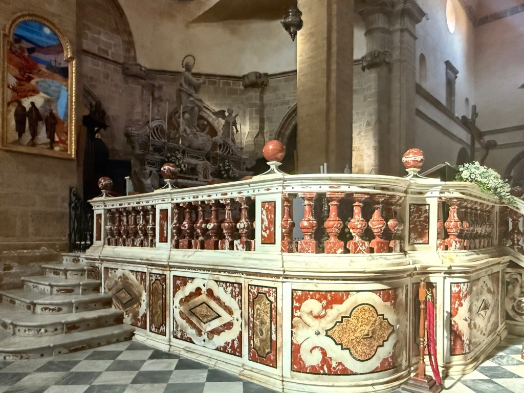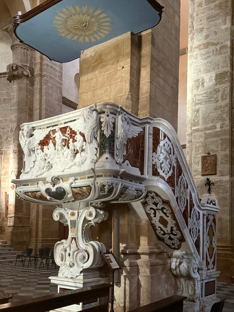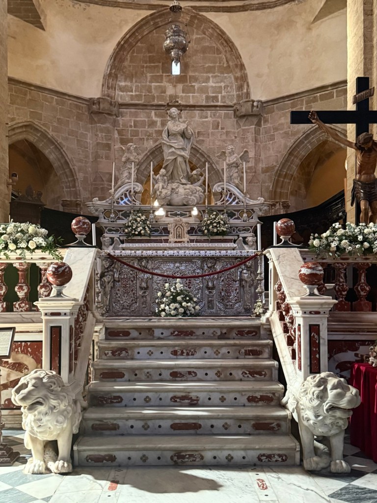 Early the next morning Robyn and I returned to visit the late-gothic Cathedral. Dating back to the 16thcentury, it has a tall bell tower that can be seen across the old town. Inside, the presbytery is surrounded by a dark -red and white marble balustrade, and at the sides of the stairs leading up to it are two marble lions. The high altar, also made with marble, is stunning!